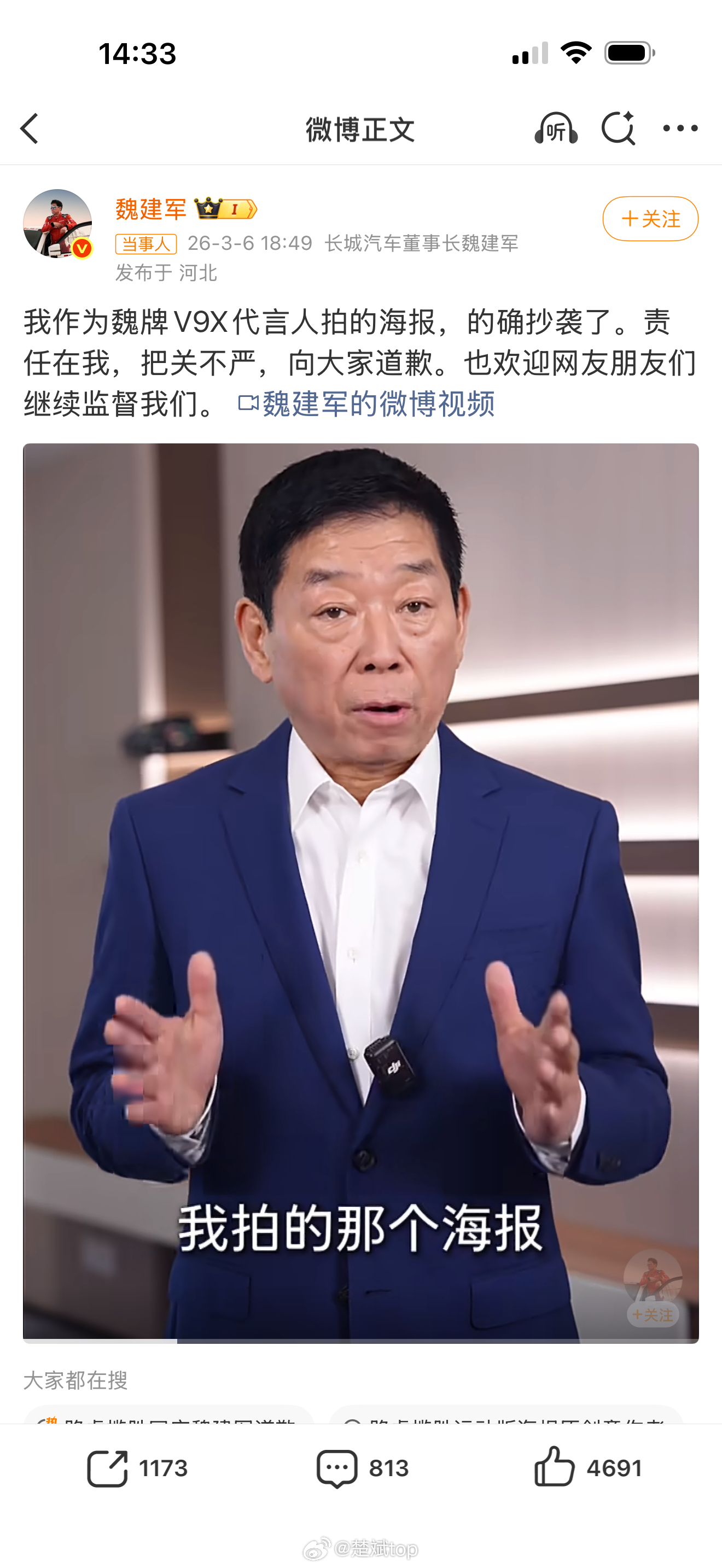 路虎揽胜还真是大格局,回应了魏牌V9X代言海报抄袭事件,真诚和担当就是最好的代言,说的真好。魏总也在微博评论区再次致歉,这个事件的结局还挺和谐,在这个一地鸡毛的环境里挺难得 !路虎揽胜回应魏建军道歉