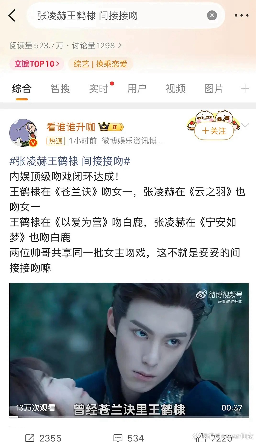 白鹿一来,宇宙闪烁请注意的热度也新高了,飙升榜高达522%,观众不仅爱看白鹿的剧