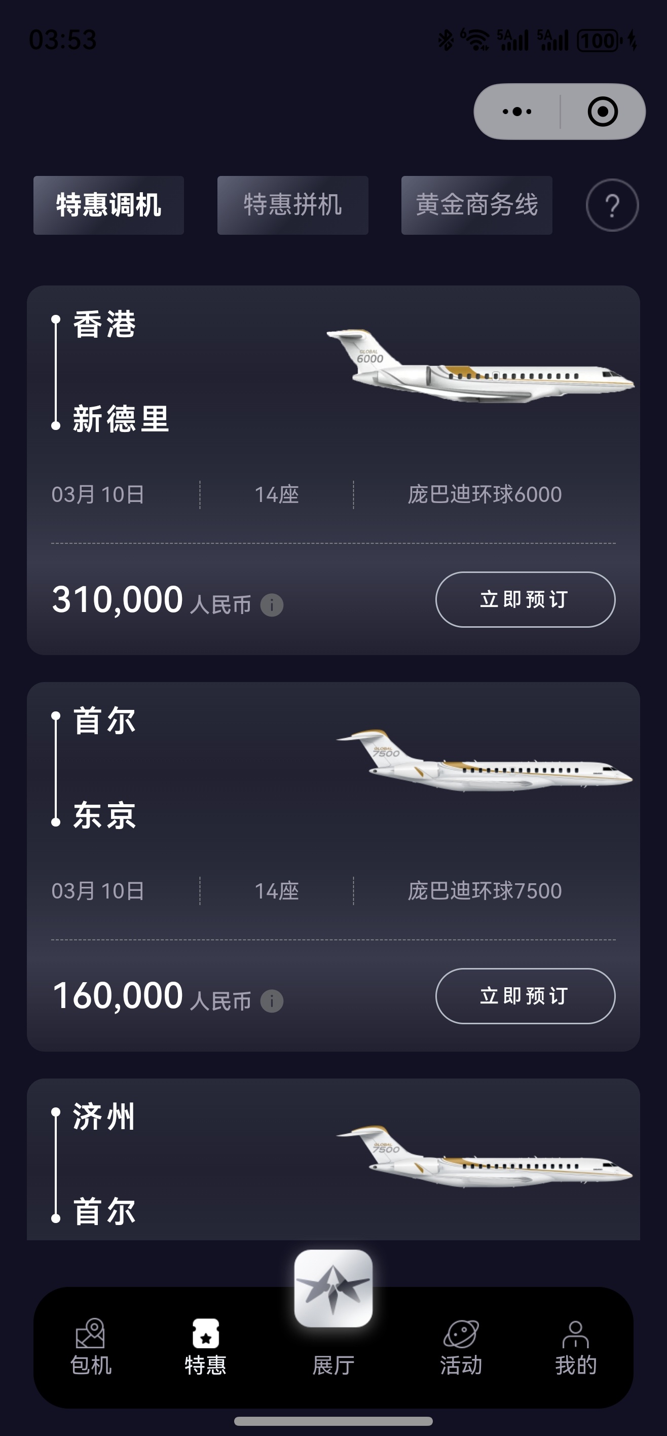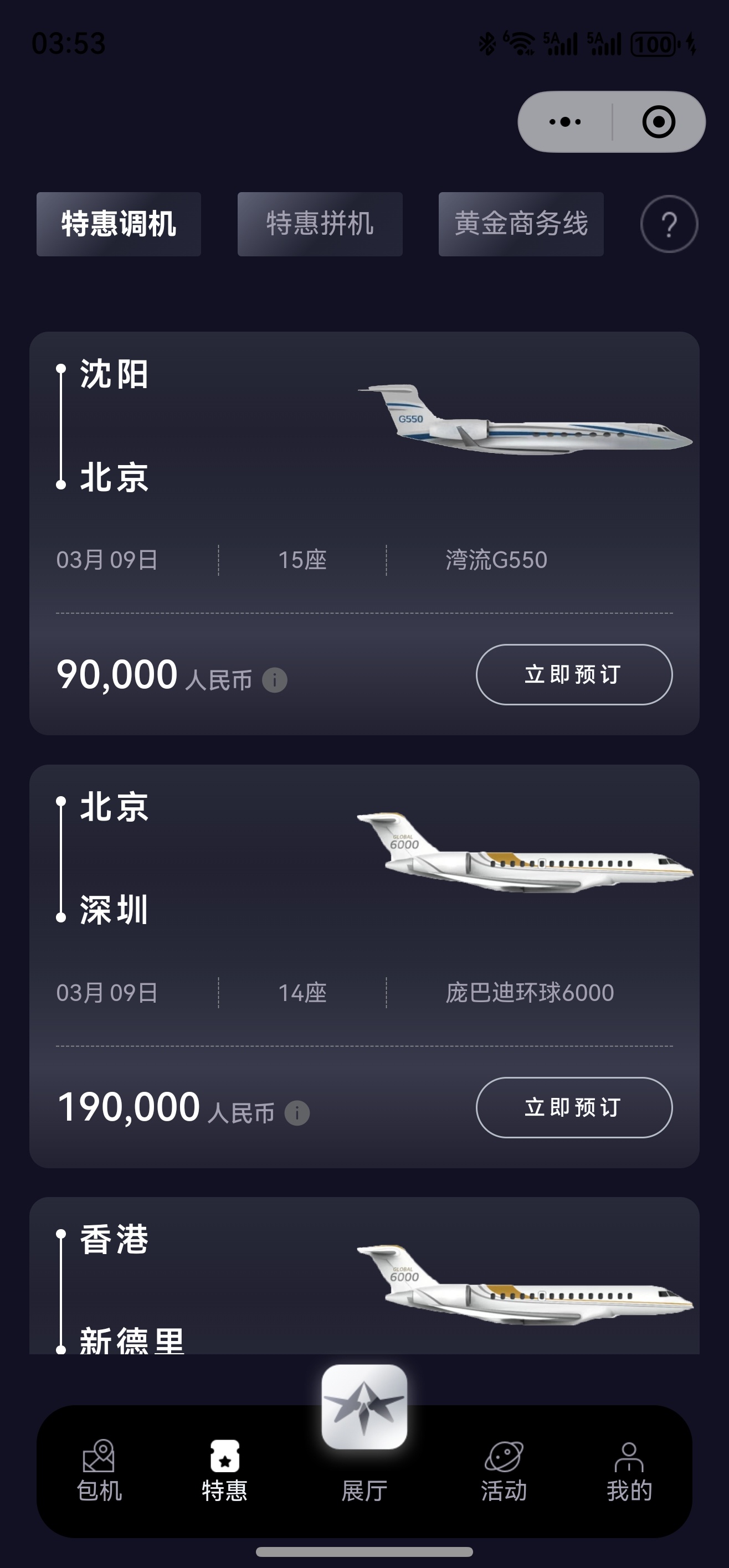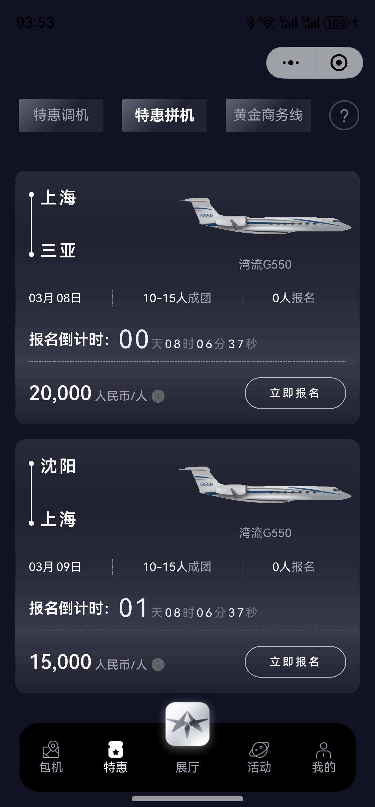 3月9日 沈阳—上海 湾流G550 1.5万一位