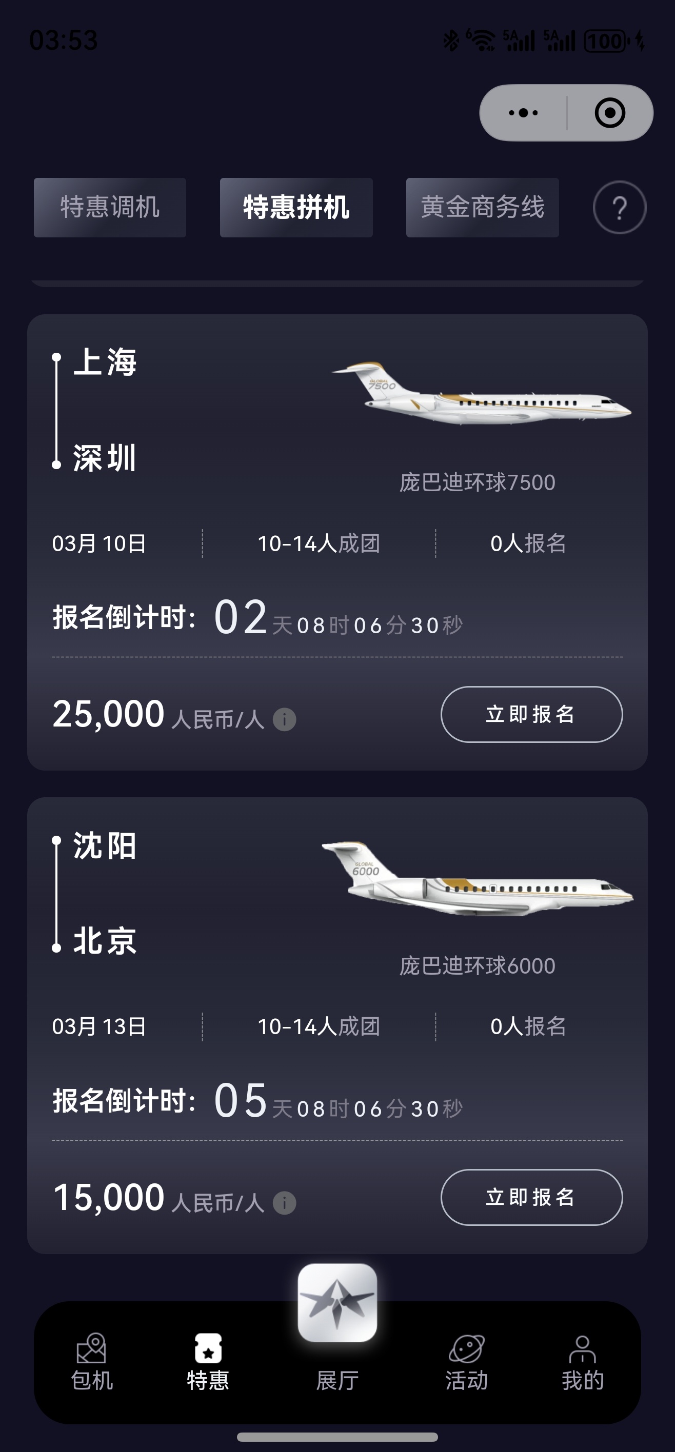 3月9日 北京—深圳 环球6000 19万
