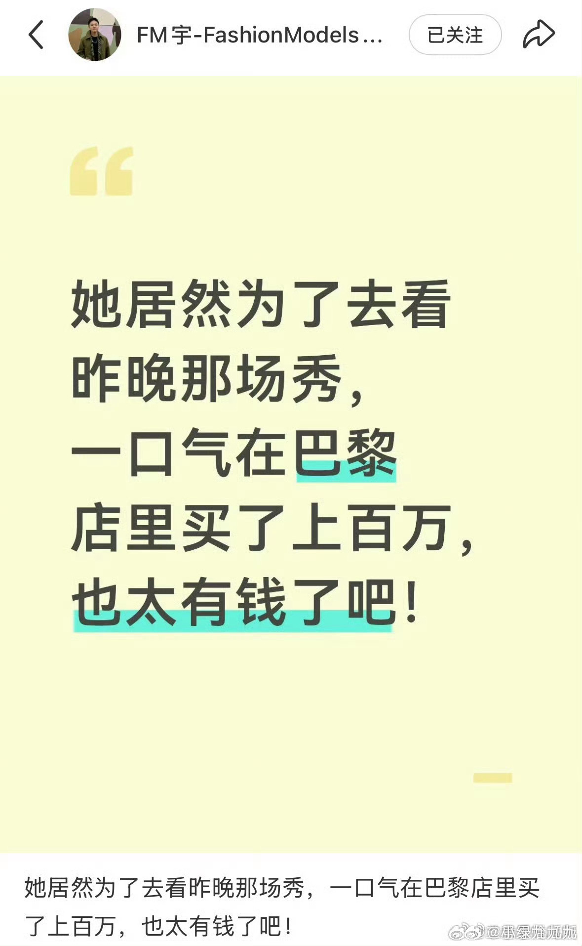 曝岳雨婷为看秀豪掷百万这要真是花大钱买的名额,那岳雨婷真的蛮有魄力的……(好有💰啊……羡慕……