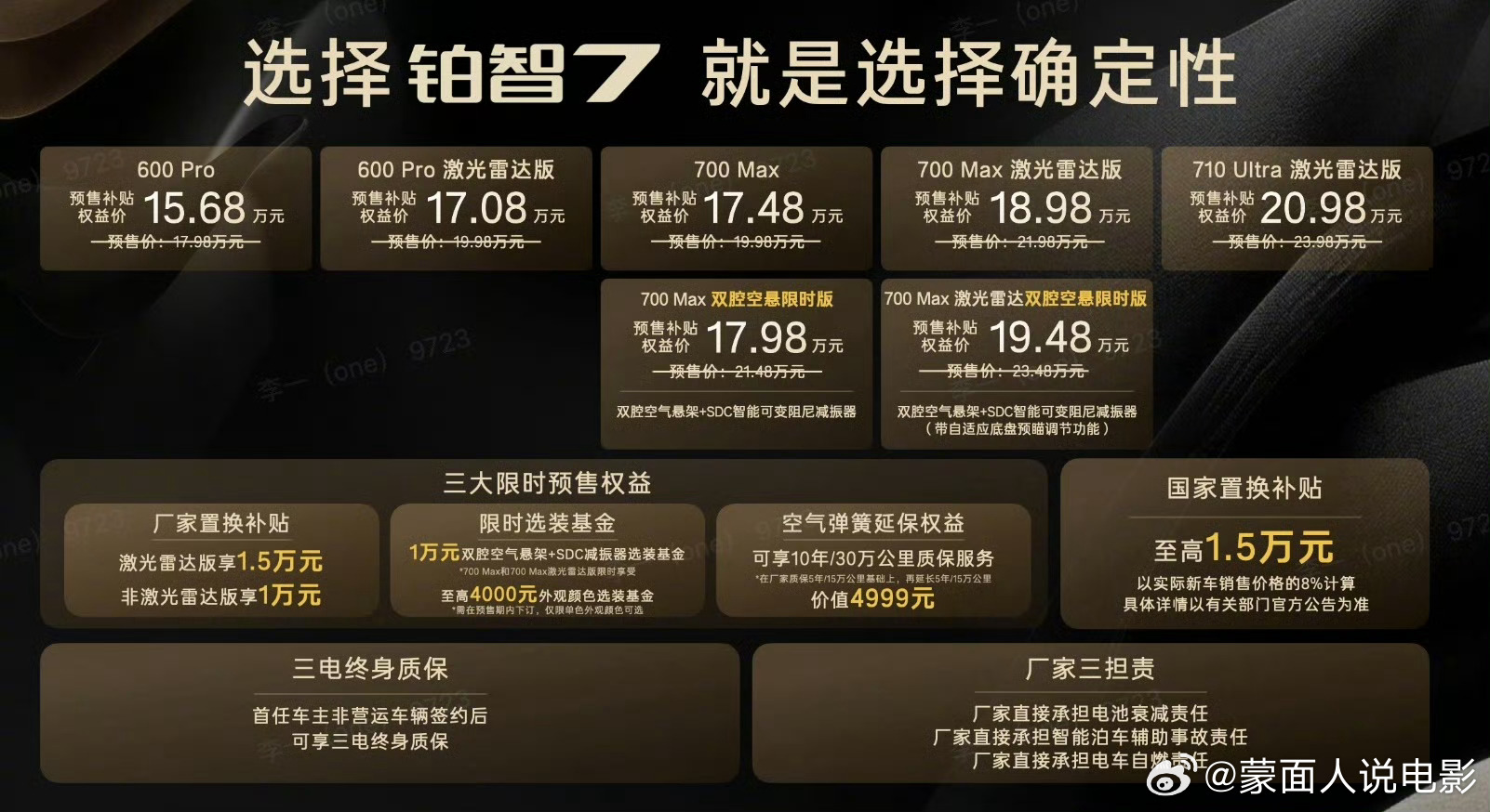 铂智7以诚意价格、越级尺寸、全面智能与安心服务,重新定义了纯电中大型轿车的价值标准,成为电动化时代不容忽视的实力选手。