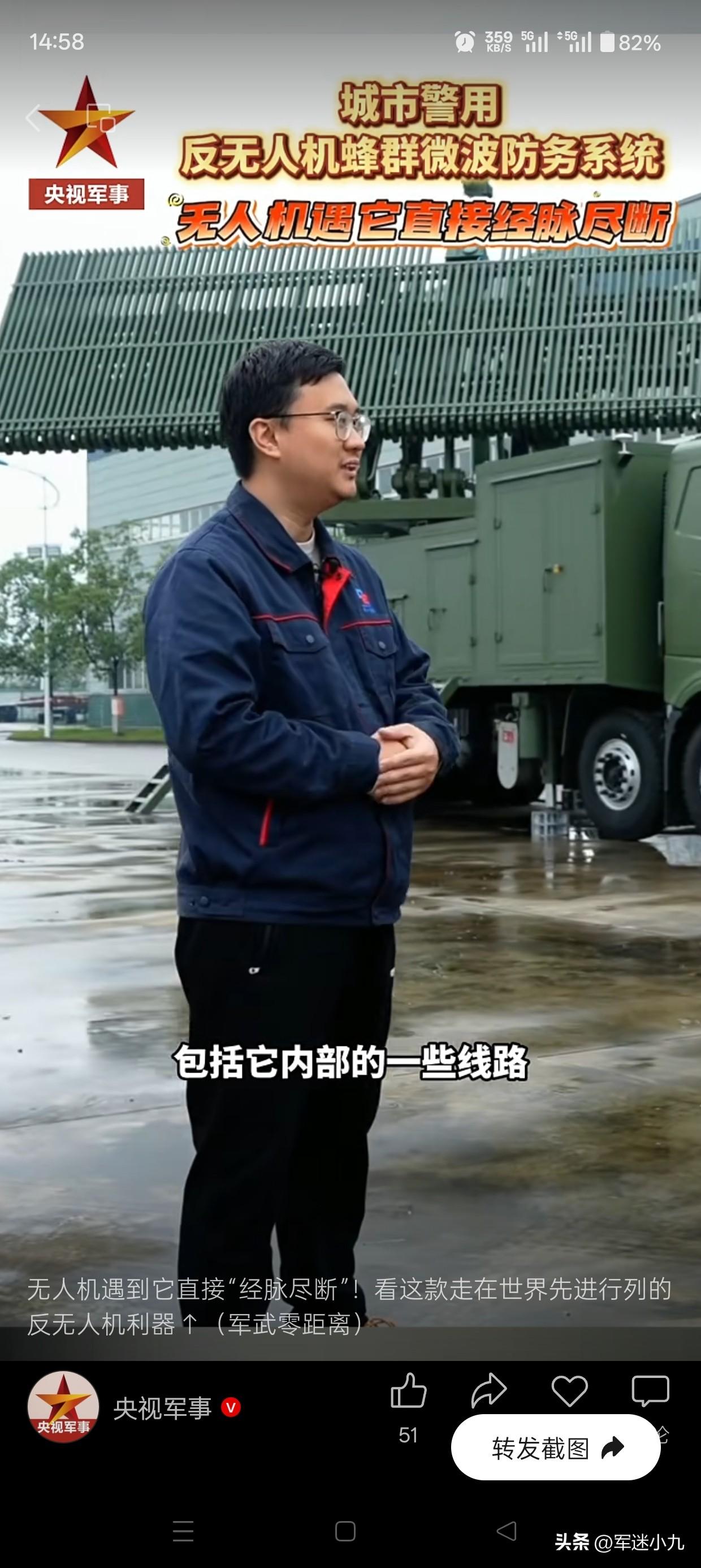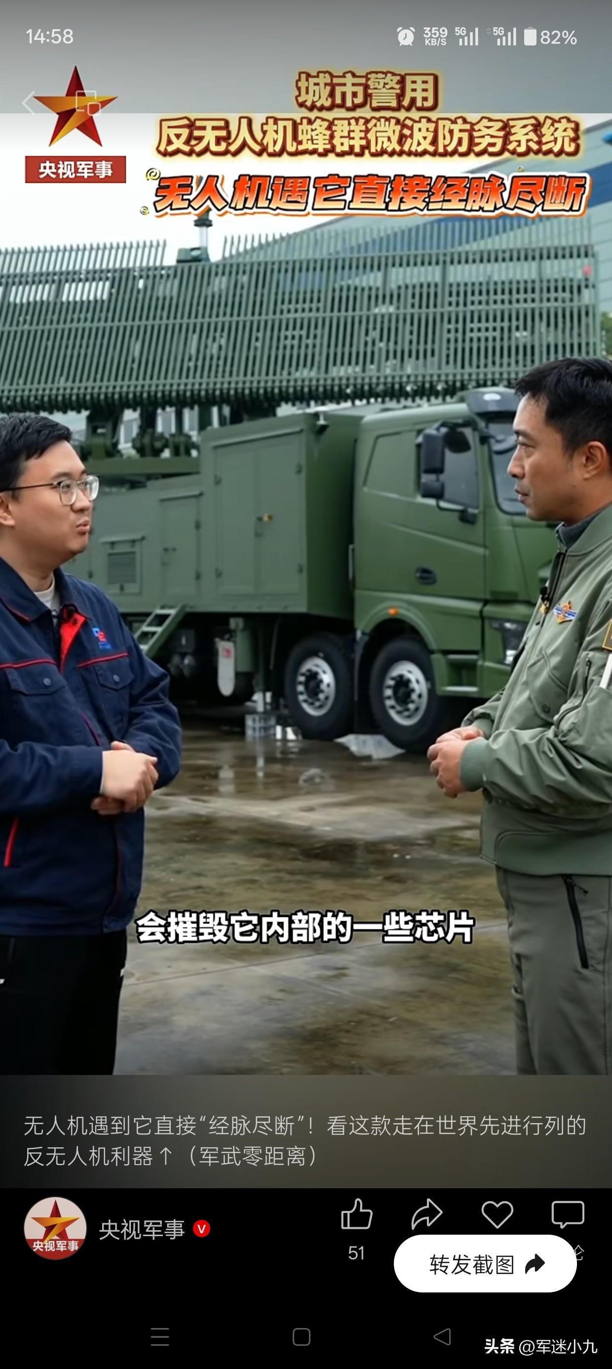 央视最新披露,几块钱就能打击无人机?最新反无人机装备再亮相…… 最新央视栏目,我们再次公开了, 我们的最新反无人机装备, 这一次公开的,并不是直接撞击动能摧毁, 而是,微波反无人机装备, 可以有效摧毁无人机蜂群攻击, 通过微波,可以直接摧毁, 小型无人机内部芯片, 可以使内部芯片线路融化和短路, 从而摧毁无人机! 央视也公开了测试画面, 满屏的无人机,像蜜蜂一张袭来, 微波武器直接摧毁无人机, 这对于fpv无人机,打击效果, 应该是非常好的! 自从,美伊战争开始之后, 咱家开始加大了相关武器的普及, 也公开了我们的很多新式武器, 包括,东风17的另一个版本, 这再次报道微波武器, 也算是让大家放心! 大家怎么看? 评论区说说你的看法吧!反无人机无人机 无人机反制装备
