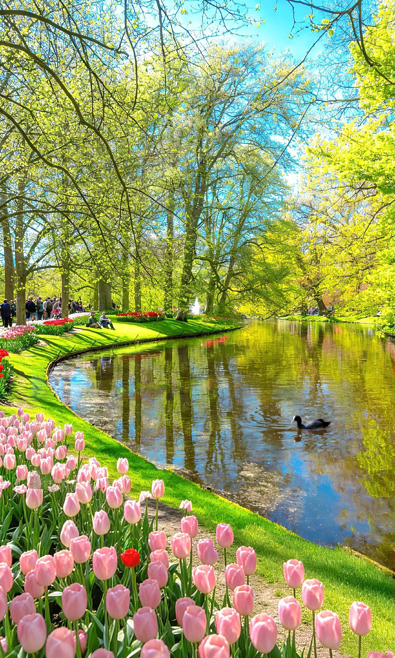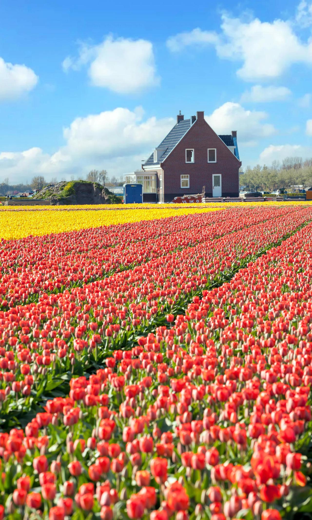 如果花都无法治愈心底的阴霾, 那一定是花还不够多🌷 每年三四月,是荷兰真正的春日主场。全世界的目光汇聚于此,数百万游客奔赴而来。一年开放8周,在32公顷的土地上,人工种下700万株球根花卉,汇集1000多种郁金香。 🌷 置身无边块的花田,黄色红色整整齐齐,这样锐利高饱和的画面,曾在小时候的挂历上见过,荷兰先入为主经典的样子。 在花田里驻足,暗自心惊, 不停按动快门,被美到失语。 📍地址:Keukenhof Stationsweg 166a 2161 AM Lisse Holland 🚌交通:从史基浦机场出发,乘坐ConneXXion库肯霍夫快速58路和54路公交直达花园;从阿姆斯特丹出发:先坐火车到Haalem,然后在火车站前乘坐50路或51路公交到Lisse,换乘57路区间公交即可到达。 📅 2026花期时间 3.19-5.10 每天的 8:00-19:00 🍔餐饮 公园里有超大的的餐厅,停下来喝咖啡吃简餐慢公园太大了需要及时补充体力 🚲 门口可租自行车 骑车游览大片的郁金香花田,但不能骑进公园 💰购票 线上现场都可以买票,线下会贵5欧 🛤️酒店、铁路和市内公交线都会推出赏花套票,不爱做攻略的P人买套票很方便 👉🏻周末复活节假期人巨多尽量错峰出行 荷兰花海 郁金香是春天浪漫天花板 春天里的浪漫鲜花占一半 春天你好