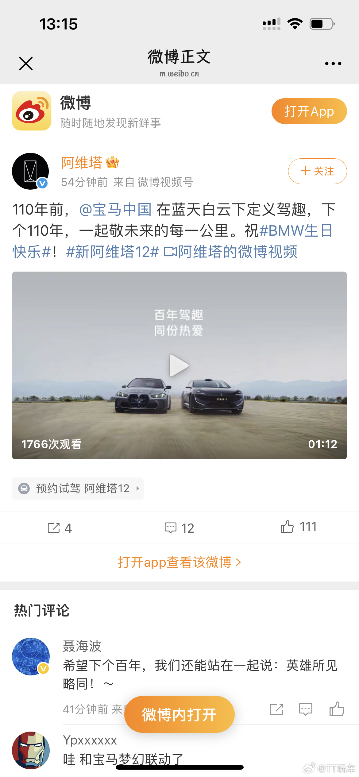 阿维塔阿维塔这种明目张胆的致敬我非常喜欢。宝马宝马110岁生日