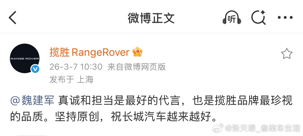 路虎揽胜回应魏建军道歉同行是朋友,双赢