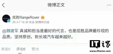 WEY新品发布,老总“不小心”蹭了某虎宣传的创意,老总不得不发文表示歉意,并表示愿意承担事件可能给对方带来的伤害。 然而,被蹭的对方非常大度,直接表态“坚持原创,大家一起进步。”这种格局直接拉满,让消费者感受到了这虎的沉稳,犹如他们的产品。 相对商战如战场,这次“商战”的应对双方都得分:前者勇于担当,后者格局拉满!