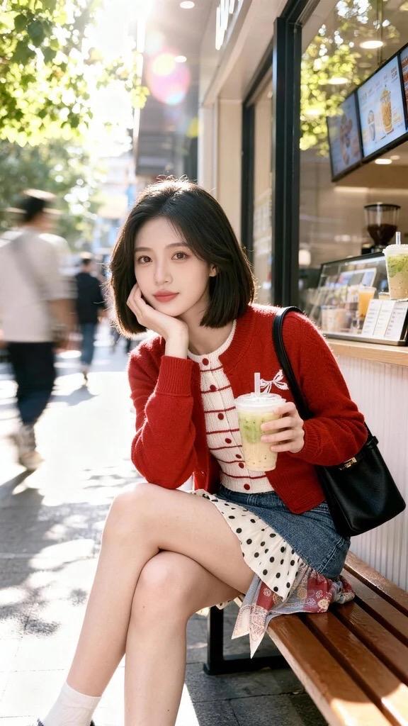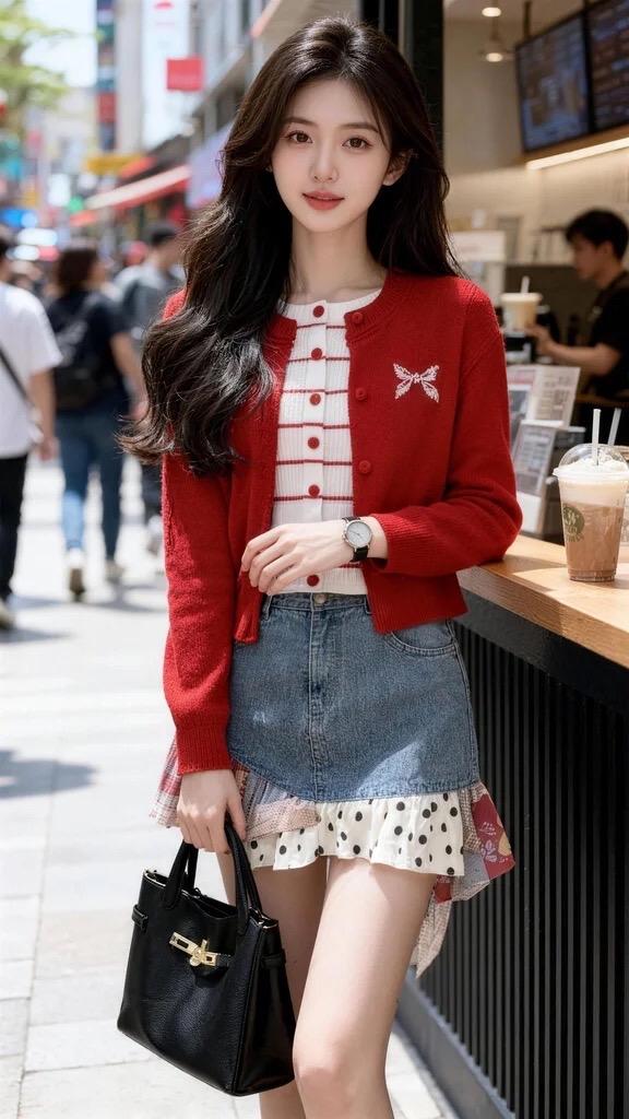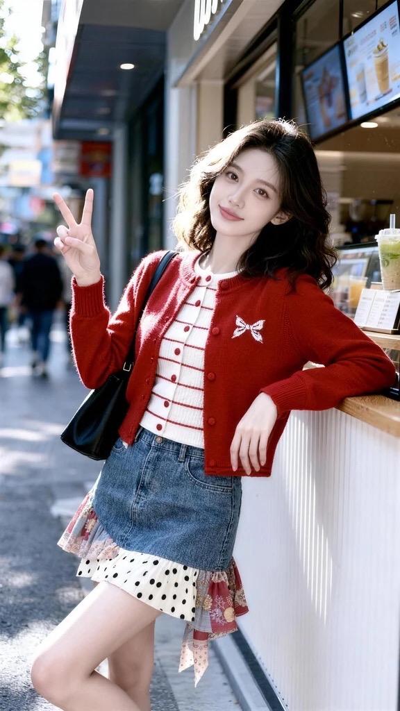 温柔穿搭 韩风穿搭 针织开衫 街头甜心风 奶茶系少女穿搭