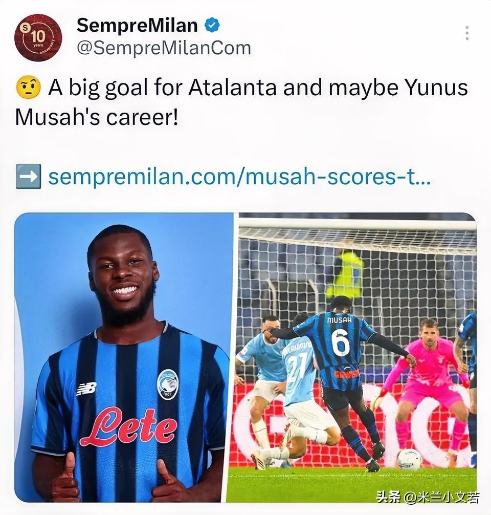 穆萨连续两场比赛取得进球。这是有缓儿?之前不是连续六场比赛都没有出场机会了,亚特兰大俱乐部冬季窗口说啥都要把穆萨送回来,但被米兰俱乐部拒绝了,也许之前不让穆萨出场不是实力原因而是对米兰俱乐部表达不满。 穆萨被亚特兰大买断个人觉得没啥机会。除非后面还能连场进球或者欧冠上有突出表现,否则亚特兰大留下穆萨没啥可能性,现在只能期待第一穆萨不要受伤,第二能多的参加比赛参加世界杯,这样夏季窗口还能研究卖英超去,阿莱格里肯定是不会留下穆萨了。 个人觉得每次说穆萨看起来不大聪明其实更多是调侃,阿莱格里到底是原因弃用穆萨现在真的很难说,按说穆萨的身体状态阿莱格里应当喜欢,但从阿莱格里来就对穆萨不感冒,特别是那场差点上脚去踹穆萨,感觉阿莱格里这次回来和之前不一样了,他好像更喜欢技术型中场,而不是过去的黑又硬。