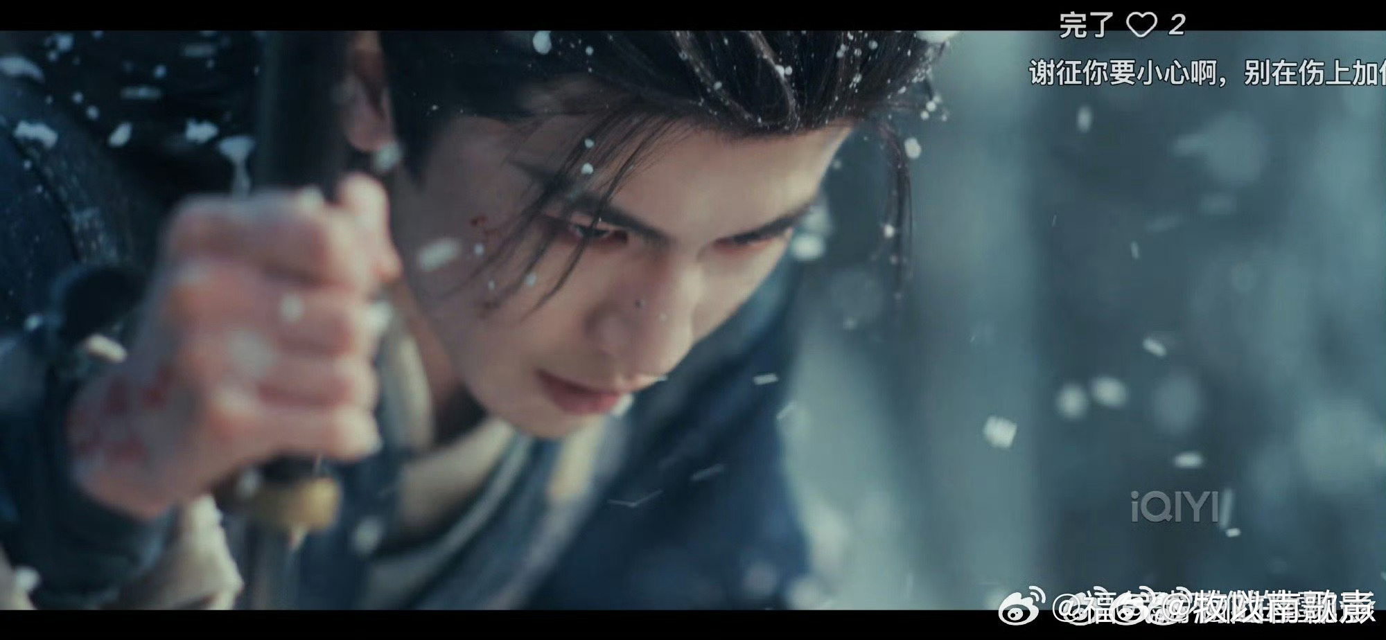 张凌赫打戏谢征挥剑破风雪,张凌赫一招一式尽显功底。慢镜头下剑势流转,侠气与破碎感交织,名场面预定!