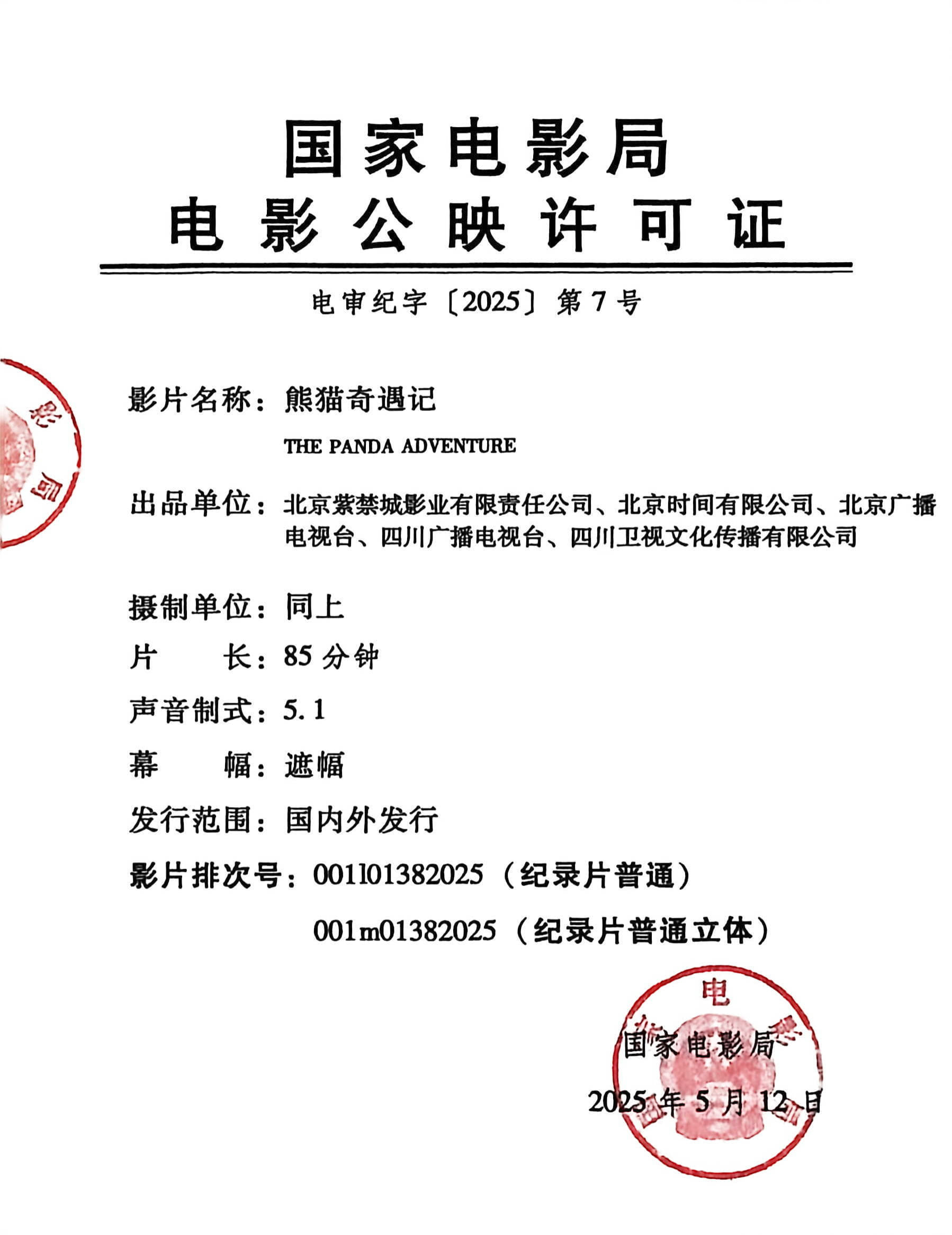 影讯 03.10艺联专线上映熊猫奇遇记 影片信息国 别:中国类 型:纪录片 长:85分钟幕 幅:遮幅声 制:5.1语 别:国语发行版本:数字2D发行范围:全国艺术电影放映联盟及片方指定影院放映期限:2026年03月10日 - 2026年04月09日