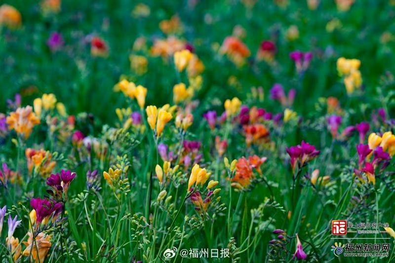 【福州小苍兰花田将进入盛花期】 在鼓山大桥下的福州花海公园,一片近5000平方米的小苍兰花田已悄然绽放,今年该公园联合福建省农科院作物所花卉研究中心,共种植26个品种的小苍兰,较去年新增15个,创下种植品种数量新高。 目前花田已进入盛花倒计时,预计3月中旬全面盛放,花期可持续至4月下旬via福州日报 虎纠人讲福州
