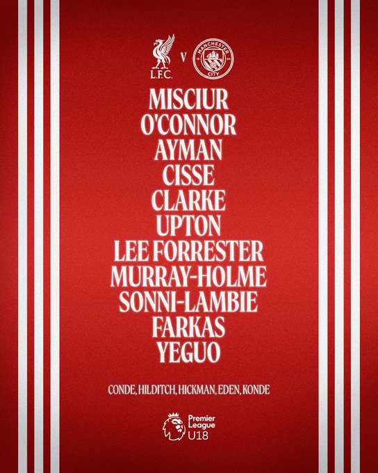 利物浦青训 第 15分钟,曼城U18点球破门 ,尽管几分钟前,米斯丘尔扑出了第一个点球 第60分钟,雷根赫斯基助攻,西塞目送 第74分钟,0-3