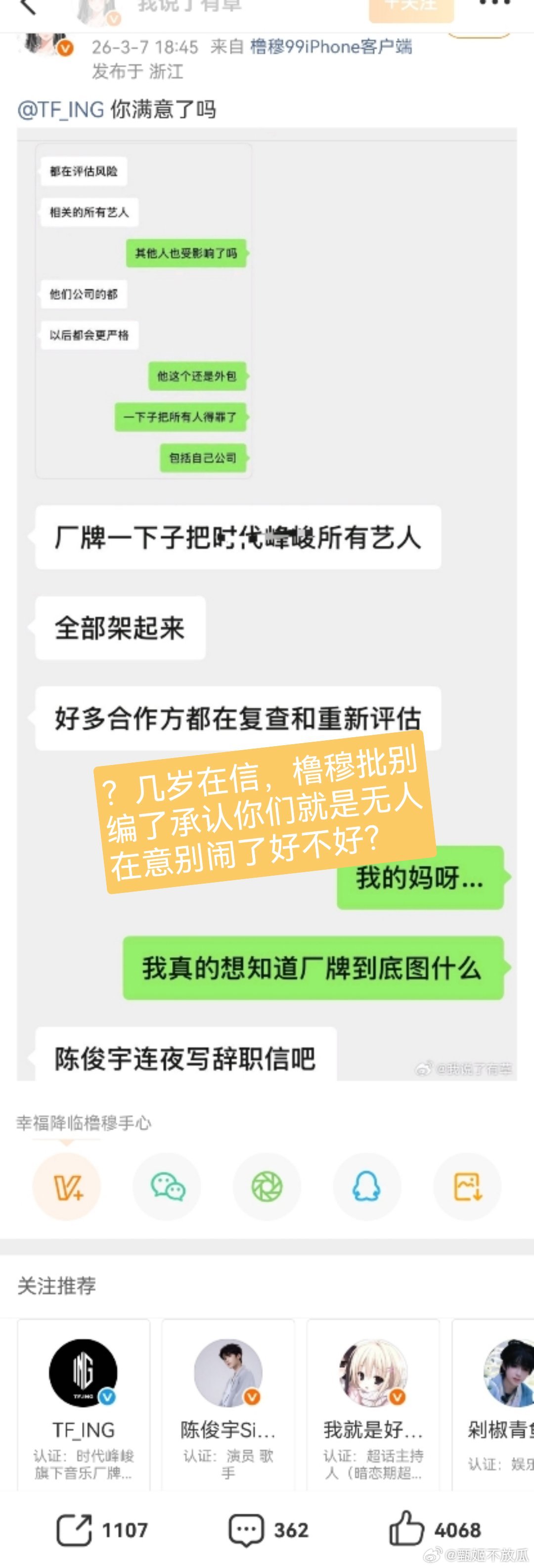 你们咋了,时代峰峻所有艺人wwzz厂牌封杀