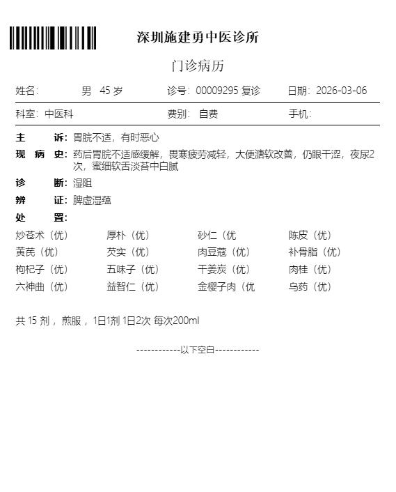 家住深圳宝安的中年男子,这两年早上醒来经常感到恶心,平时眼睛干涩,疲劳怕冷,口干口苦,大便不成形,尿频尿急尿不尽,每天晚上起来4、5次。患者在头条刷到我后,赶在春节前最后一个出诊日过来看诊,前天复诊时反馈:胃脘不适感缓解,怕冷疲劳减轻,大便开始成形,夜尿减少至2次,整体好转明显!