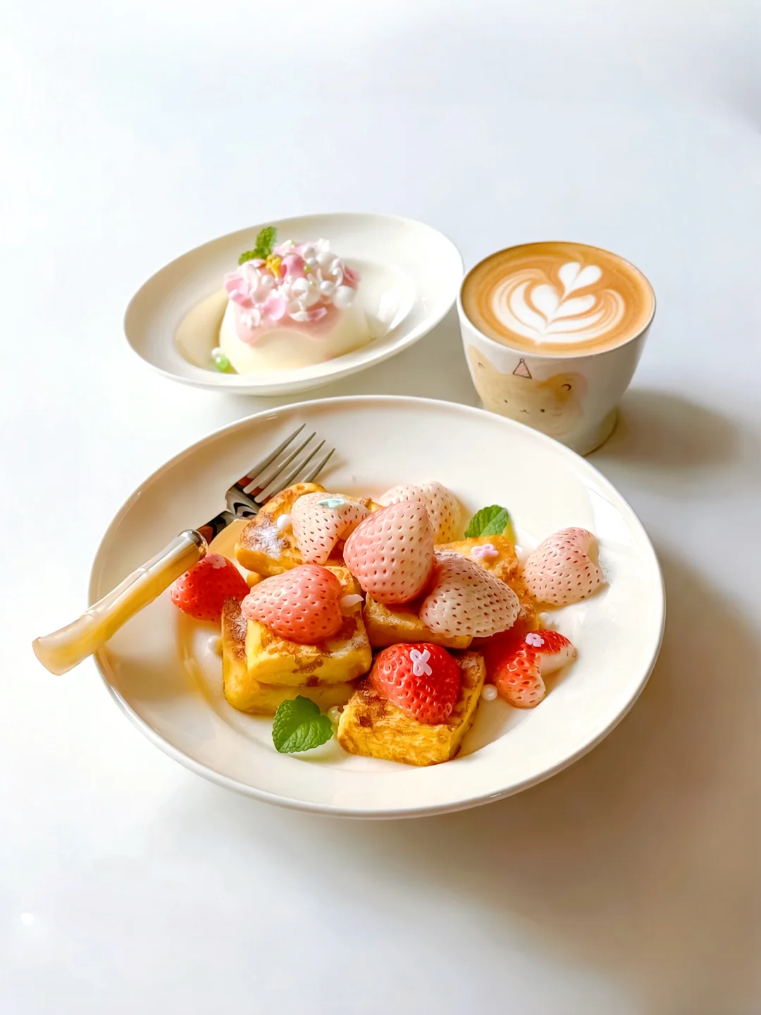 早餐 | 草莓奶油面包 🍓| 热拿铁