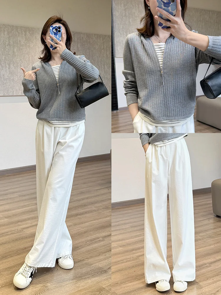 针织衫➕白色阔腿裤 这么穿简单干净又舒适~ 舒适自如,防皱易打理 遮肉修腿,显瘦显高! 158小个子穿搭 梨形身材穿搭 早春穿搭 休闲裤 白色阔腿裤 抗皱裤子 针织衫穿搭 浅色系穿搭 裤子推荐 小个子穿搭