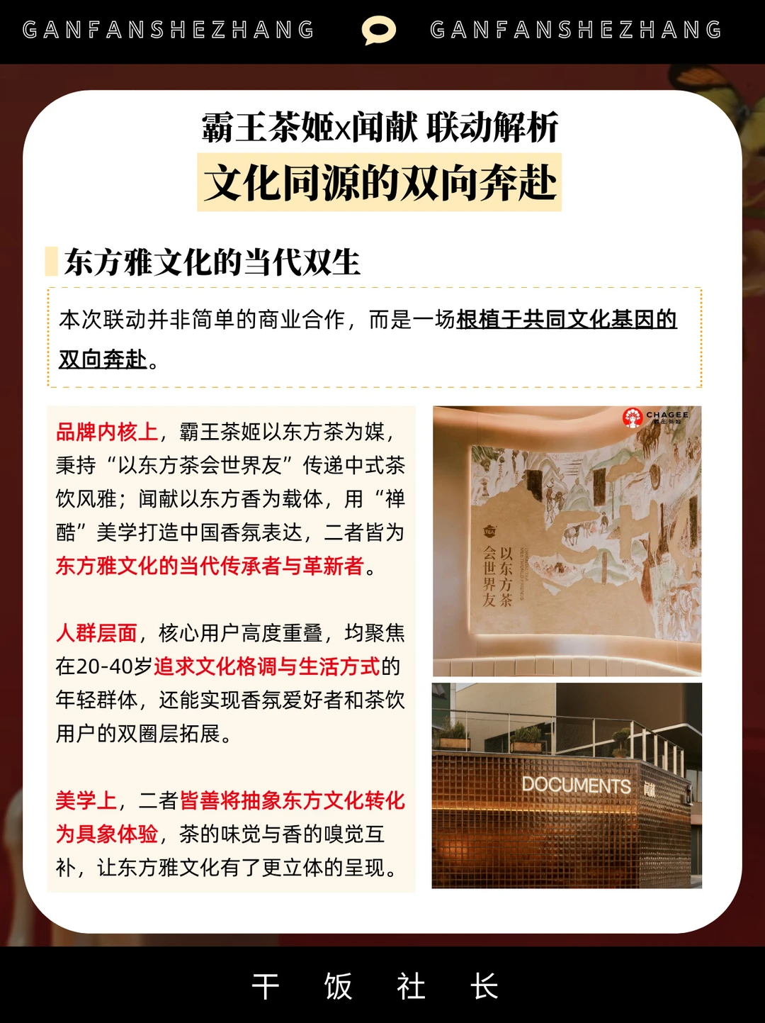 2026刚开工,茶饮圈就迎来最具东方味的跨界联动,霸王茶姬携手高端香氛品牌闻献,以“茶香生境”为灵感,奉上了一杯最有东方味的开年香氛茶,凭借茶与香的文化共生、地域符号的深度融合、新年情绪的精准拿捏,成为年后联动的标杆之作。