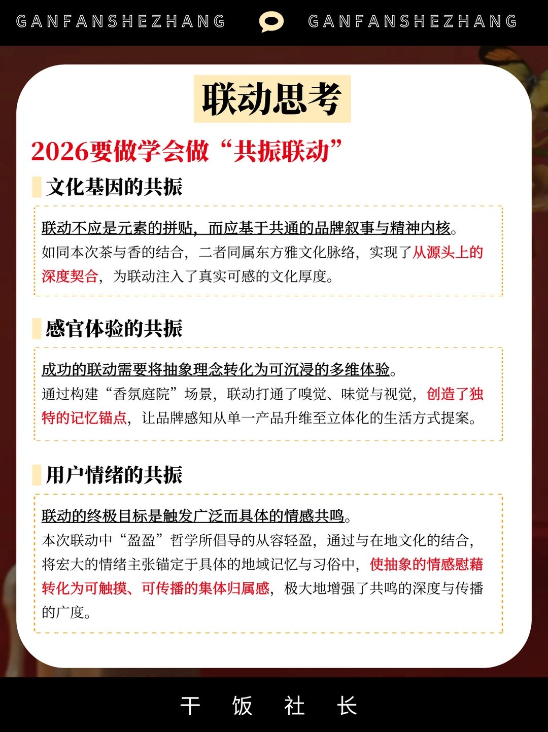这场联动定义了“共振联动” 的核心逻辑:高级的联动不是品牌叠加,而是文化基因、感官体验与用户情绪的三维共振,为2026行业联动提供了可复制的破局范式。