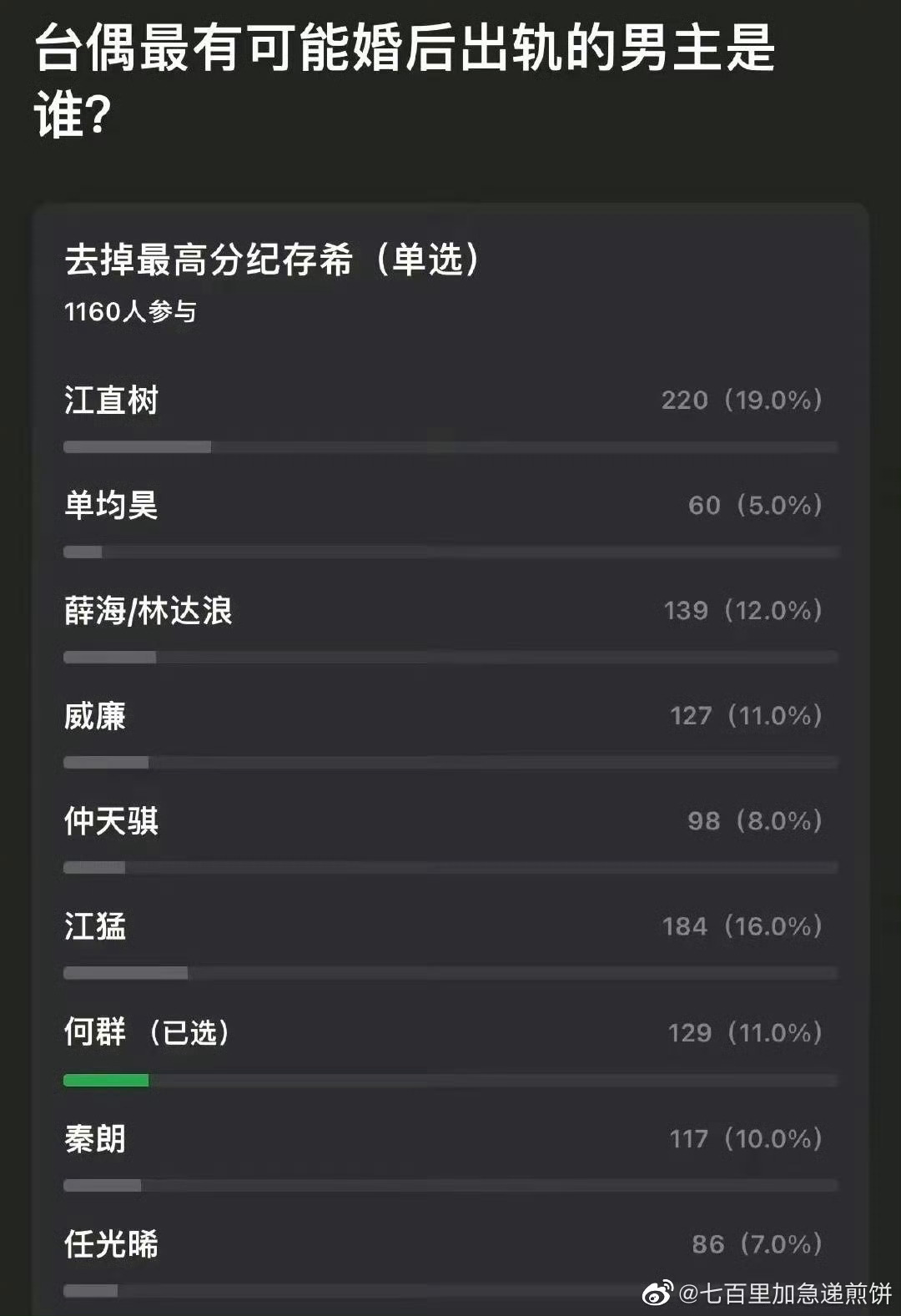 这个台偶男主婚后谁会出轨的榜单,第一名竟然是江直树。感觉他好冤呐,江直树唯爱袁湘琴在剧里其实还表现的挺明显的