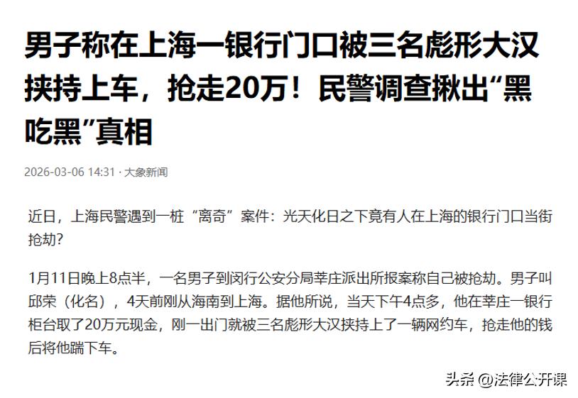 上海闵行,一男子到派出所报警求助,称自己在银行取了20万现金后,刚出门就被三名陌