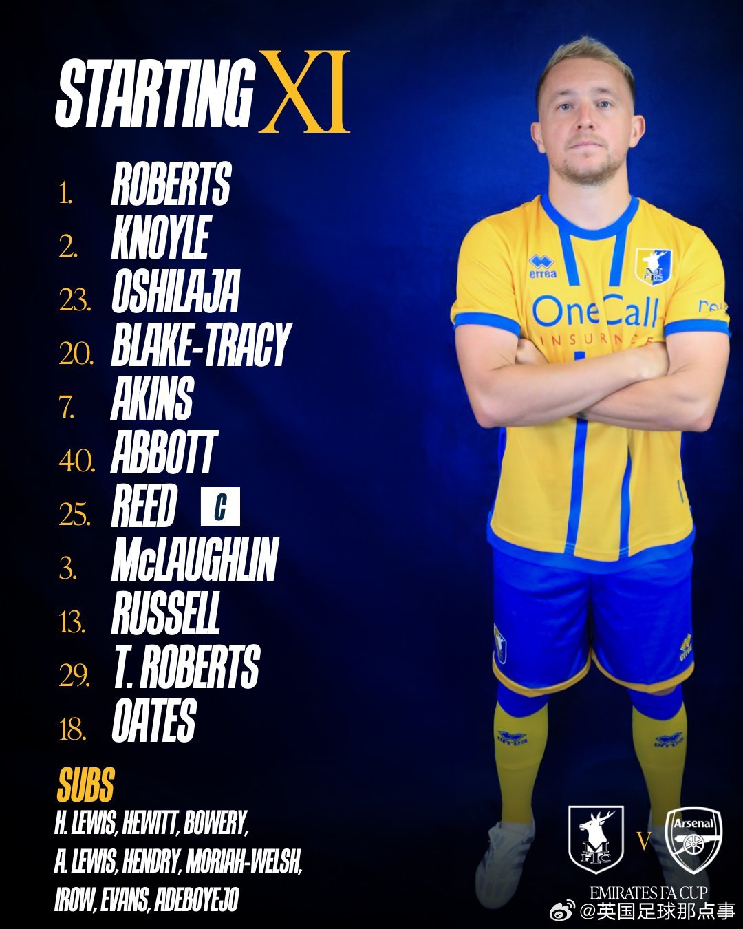 足总杯曼斯菲尔德vs阿森纳 首发阵容⬇️