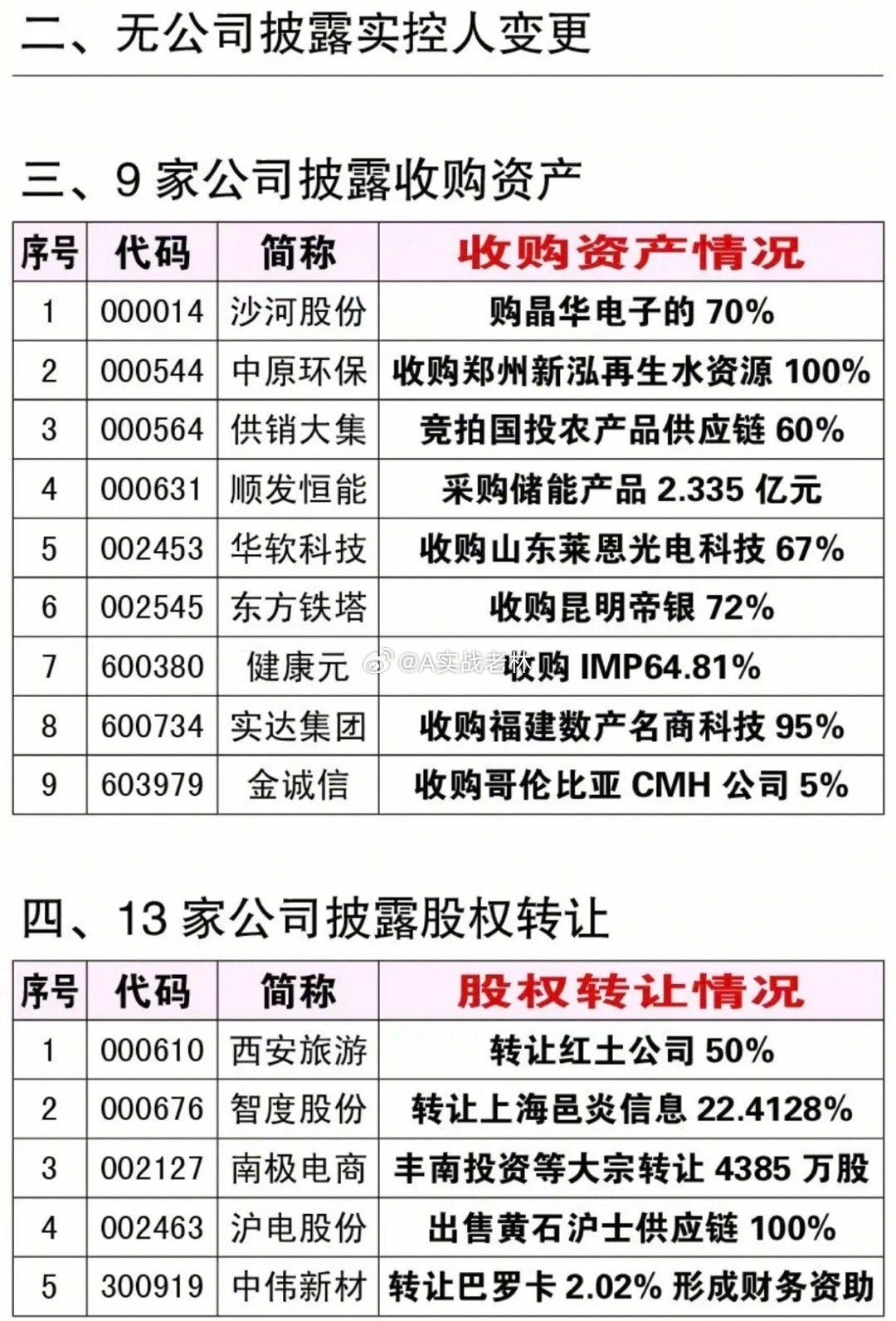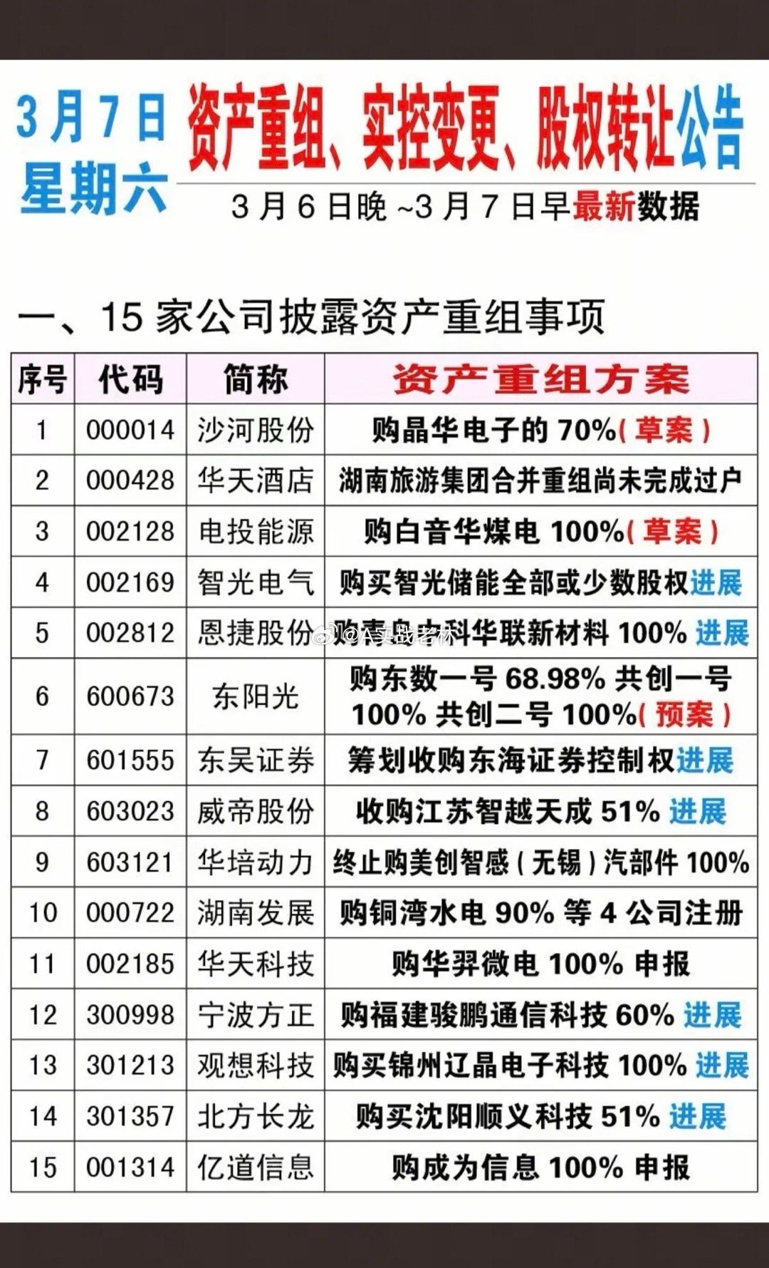 3.7周六 最新:资产重组、股权转让、实控人变更公告!