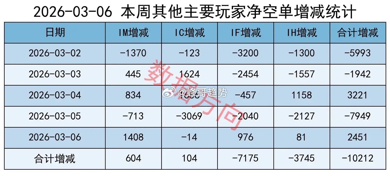 其他主要玩家,全周减空10212手;