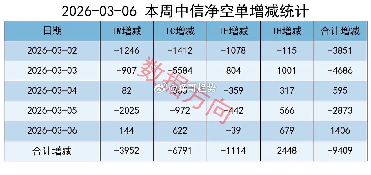 对IH加空2448手,分别对IF、IC、IM减空1114手、6791手和3952手;
