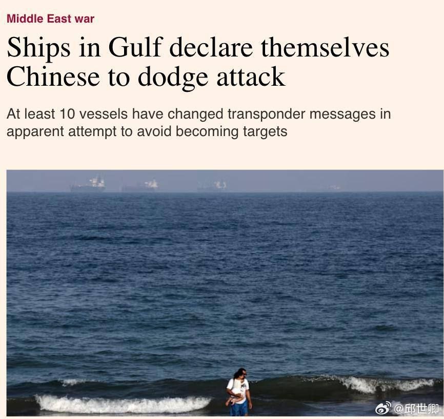 波斯灣一些船隻正在更改其應答器訊息,聲稱自己是中國船隻,以避免遭到伊朗的攻擊。