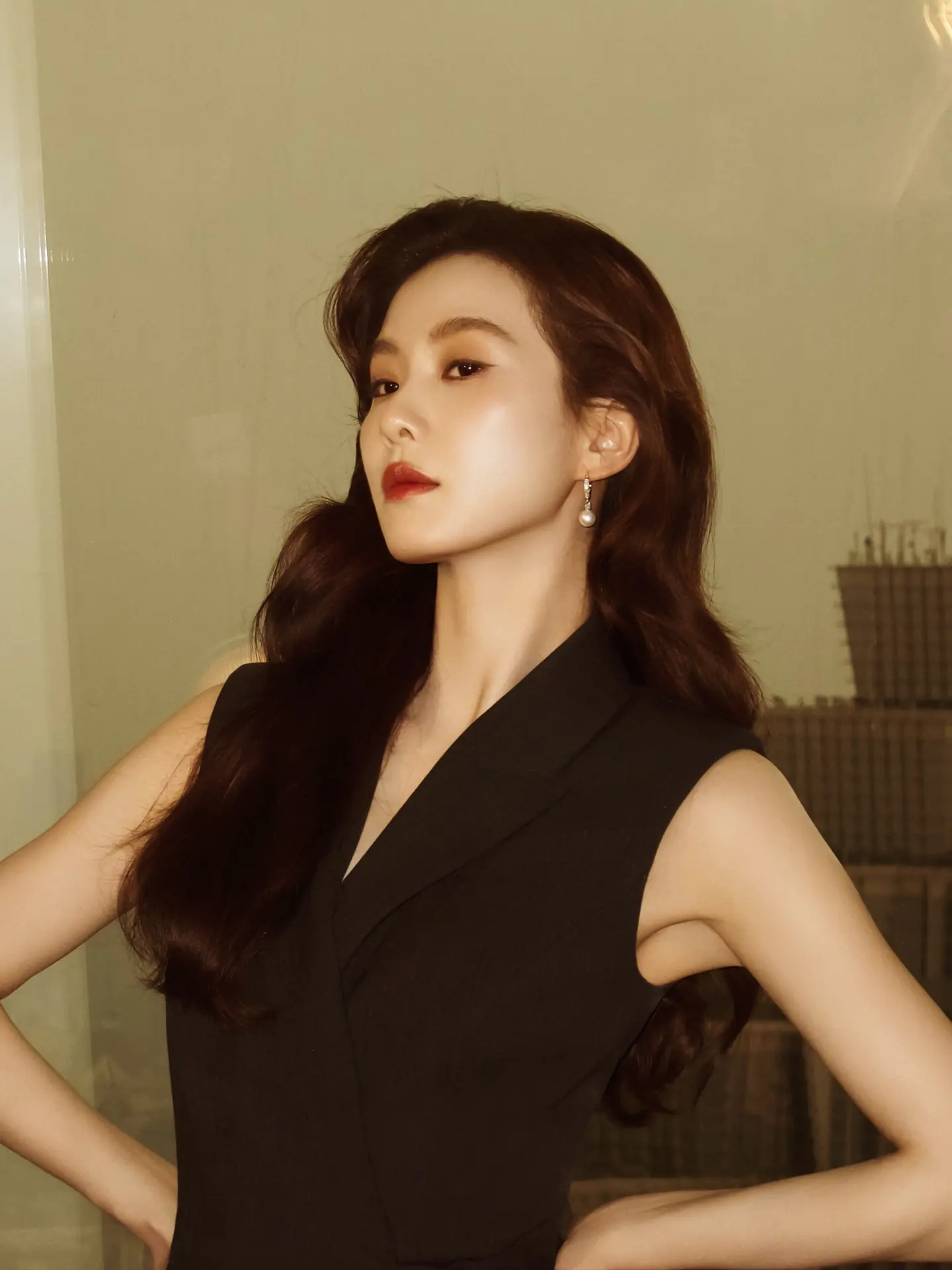刘亦菲这条裤子挺养生,毕竟降温了肚脐眼必须护住啊