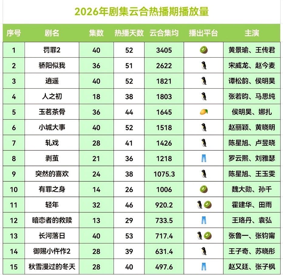 2026年云合热播期集均