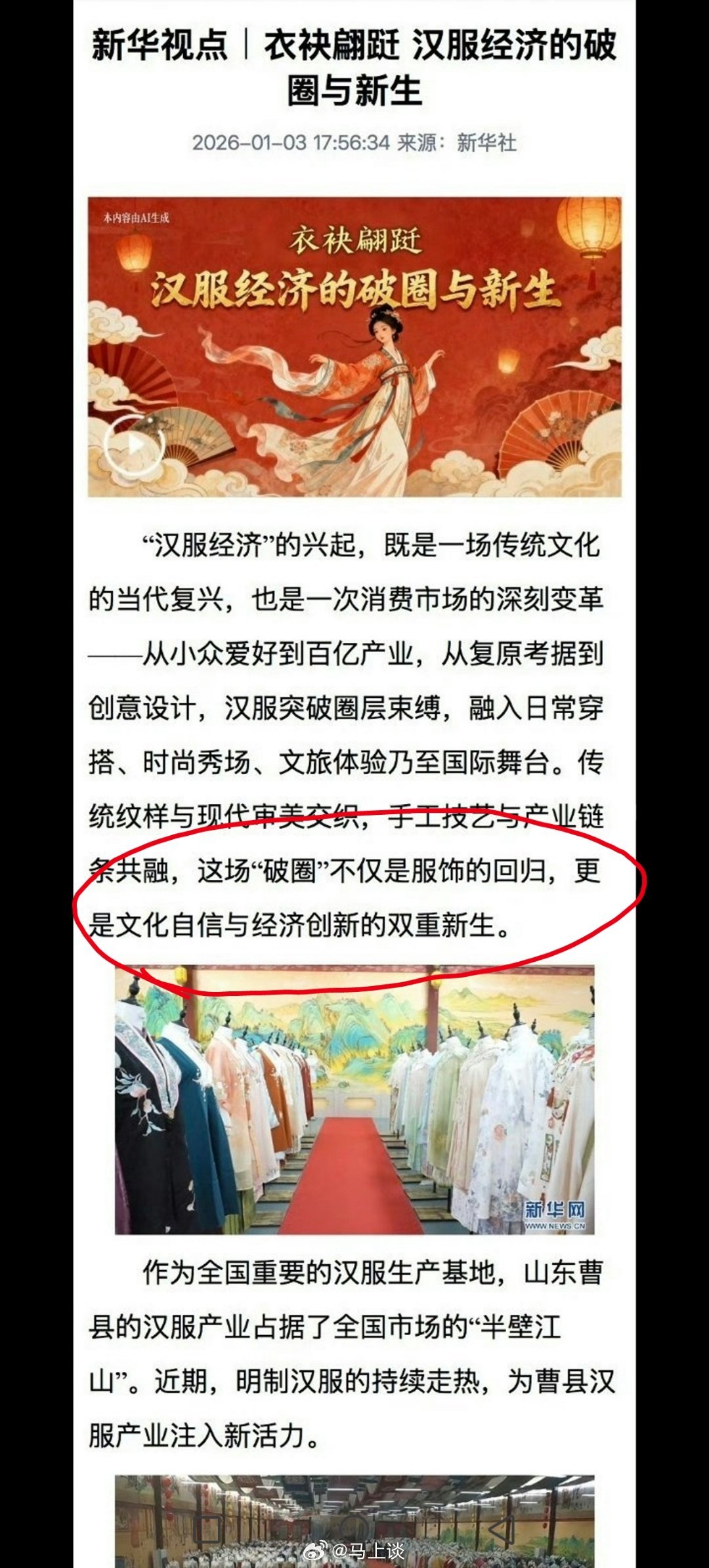 新华网点评汉服经济破圈与新生:“这场破圈不仅是服饰的回归,更是文化自信与经济创新的双重新生!”