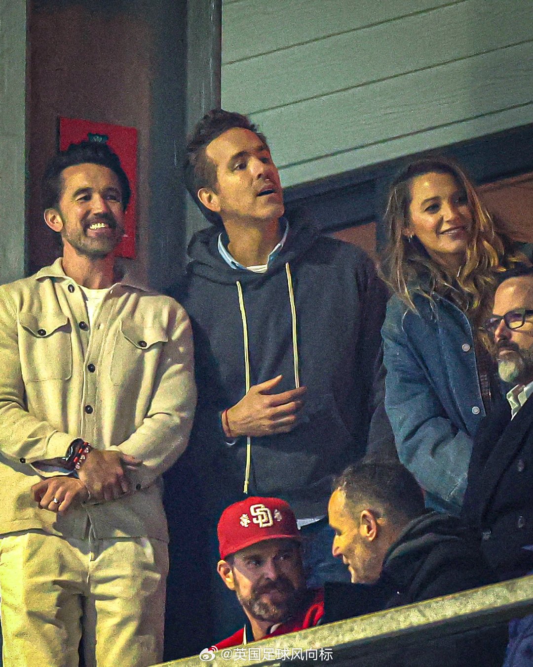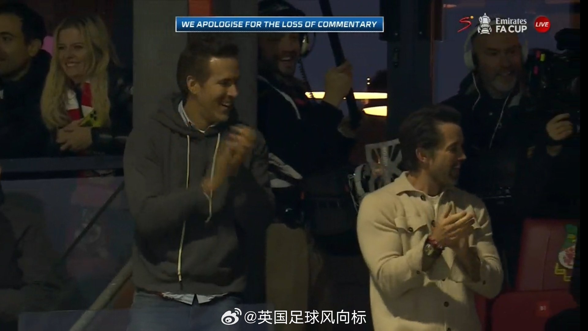 【明星老板】足总杯,雷克瑟姆vs切尔西,雷克瑟姆大股东之一的瑞恩-雷诺兹(“死侍”的扮演者),带着老婆一起在现场观战。