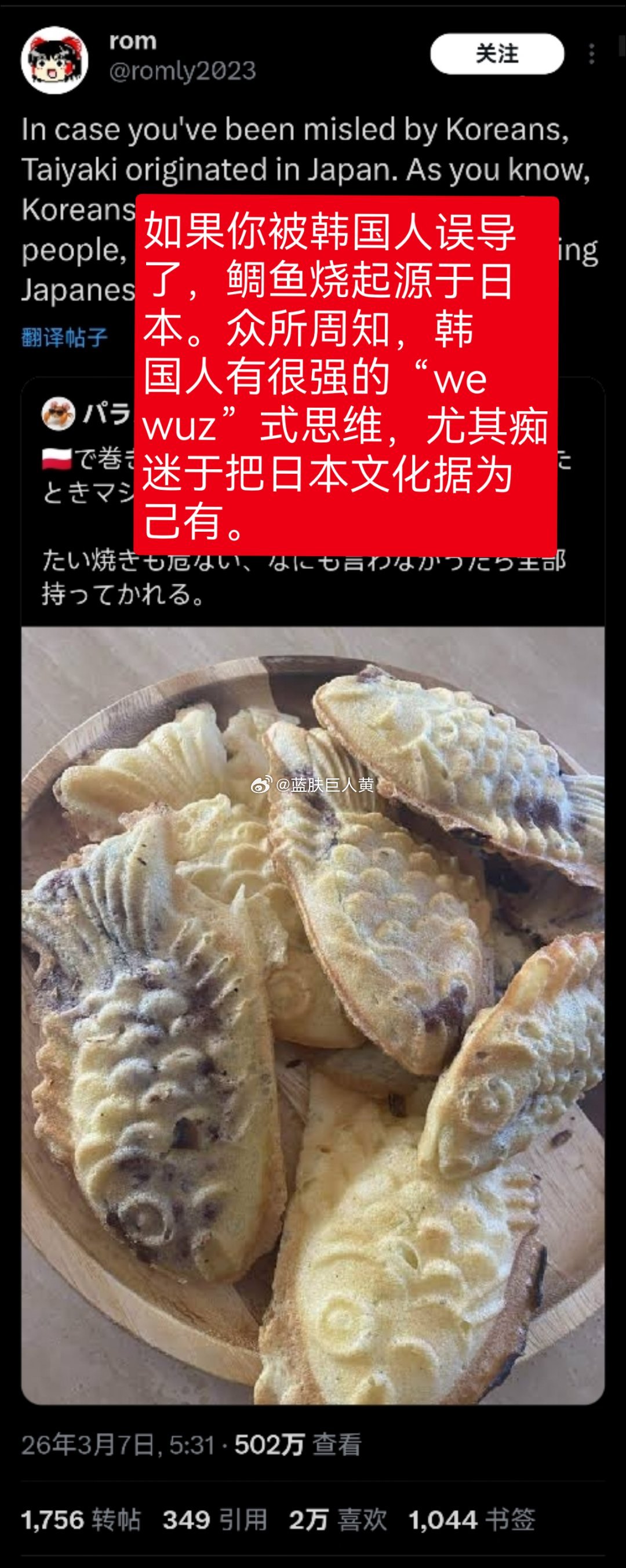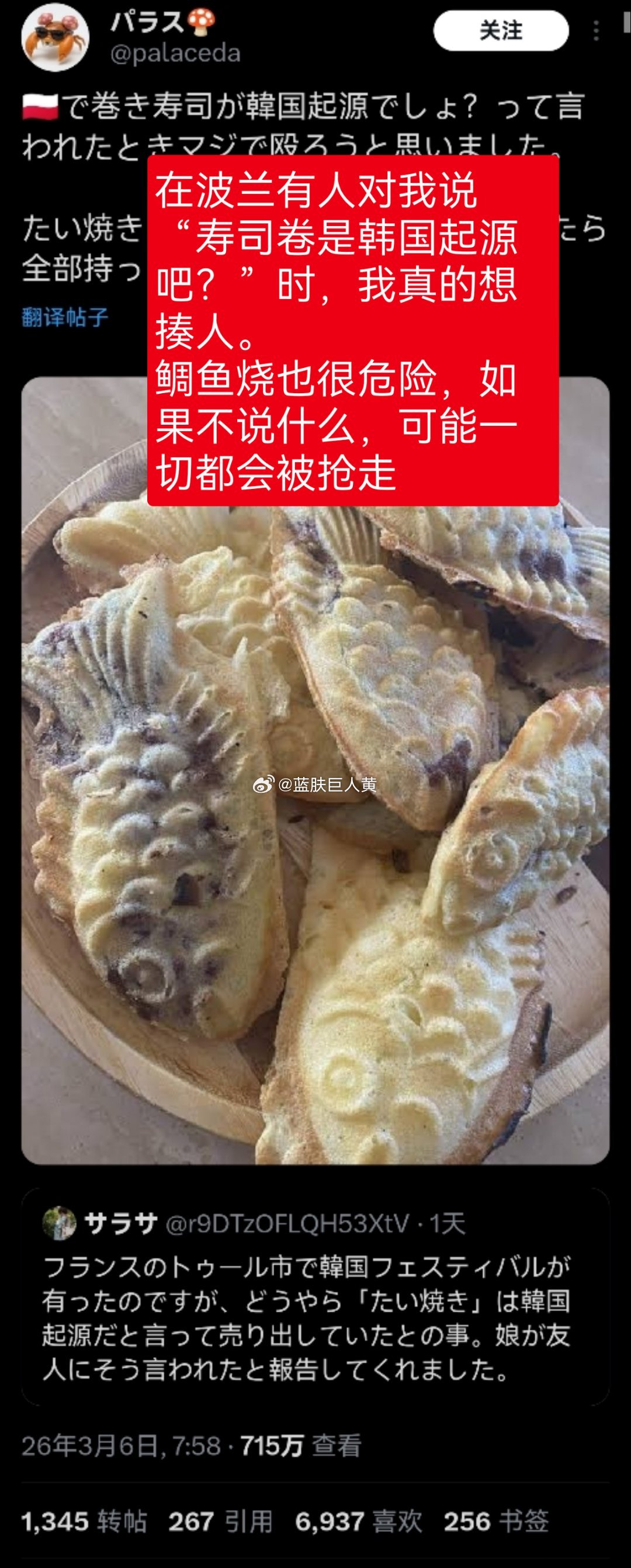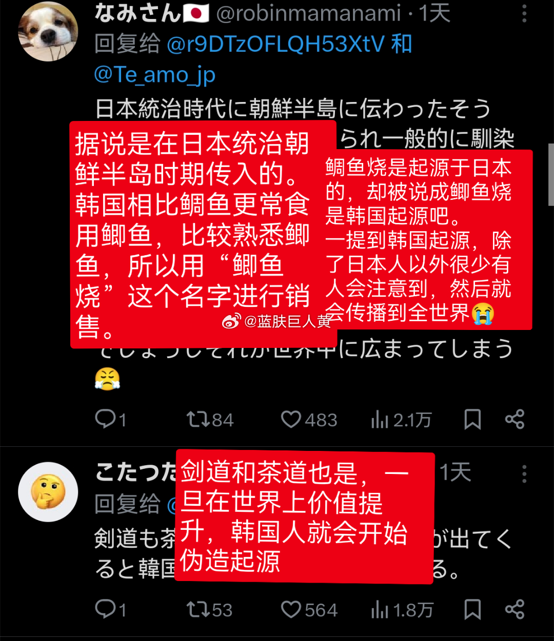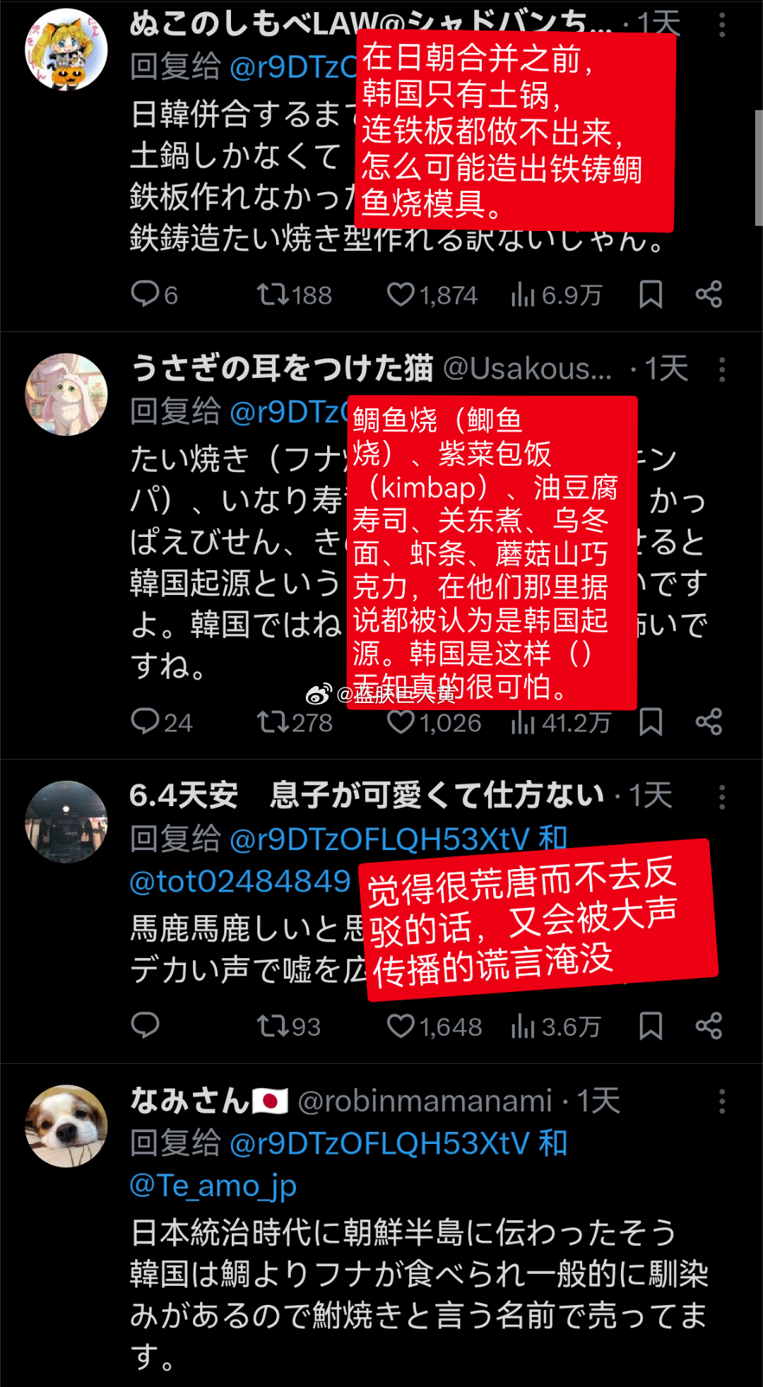 日本这几天在推特上讨伐韩国偷日本的鲷鱼烧、寿司;韩国则抨击日本照样偷中国的饺子和拉面