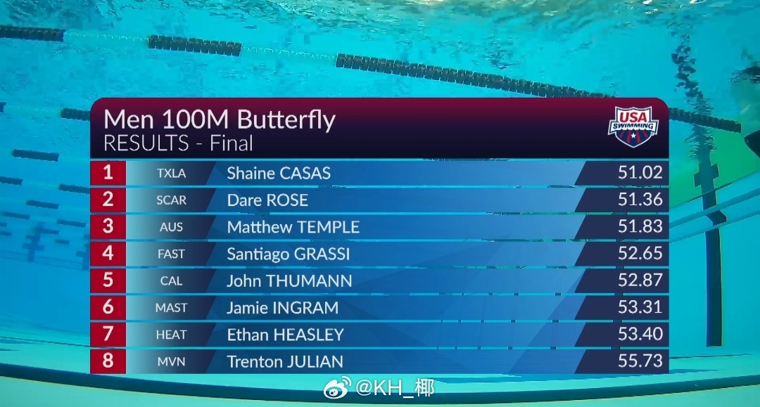 美国游泳系列赛维斯蒙特站男100蝶决赛泡面51.02Rose51.36