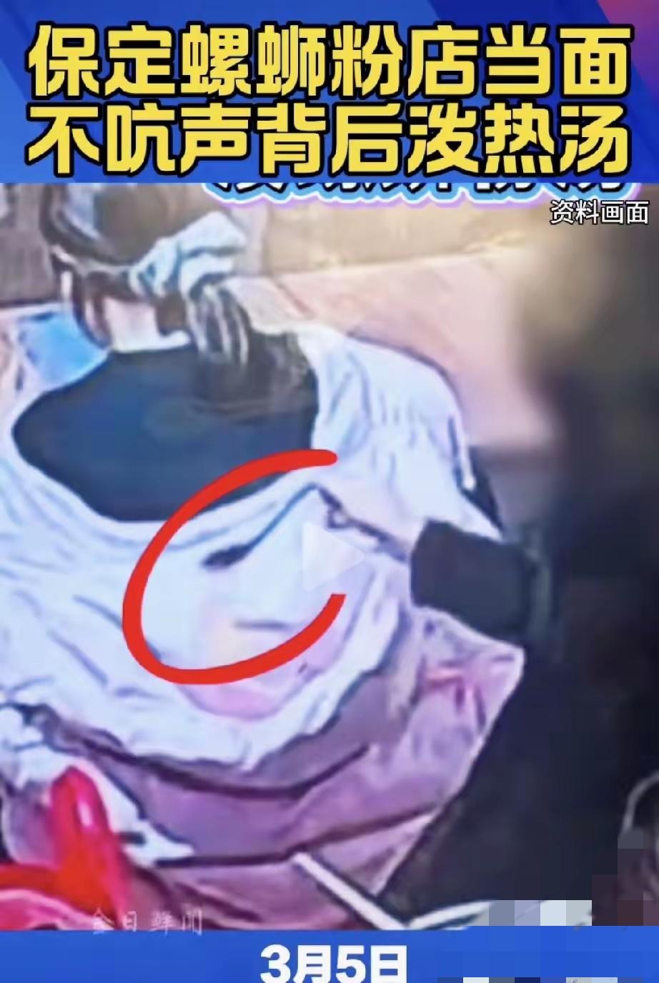 合肥保定的一家螺蛳粉店内,一名女顾客吃饭时不小心拿错了凳子,发现后第一时间就还了回去,态度特别诚恳。 谁能想到,对方既不提醒也不沟通,居然趁她不注意,用勺子把滚烫的螺蛳粉汤悄悄泼进了她的帽子里。这心眼也太小了,就为一把凳子,用这么阴损的手段报复,实在让人膈应。 监控把全过程拍得一清二楚,她的做法也被网友骂上了热搜。小事不小看,最能看出一个人的教养。得理不饶人还背后使坏,既损人又不利己,一旦曝光,工作生活都可能受影响。 做错事就该主动道歉赔偿,这是最基本的底线。如果是你遇到这种事,会选择怎么处理?