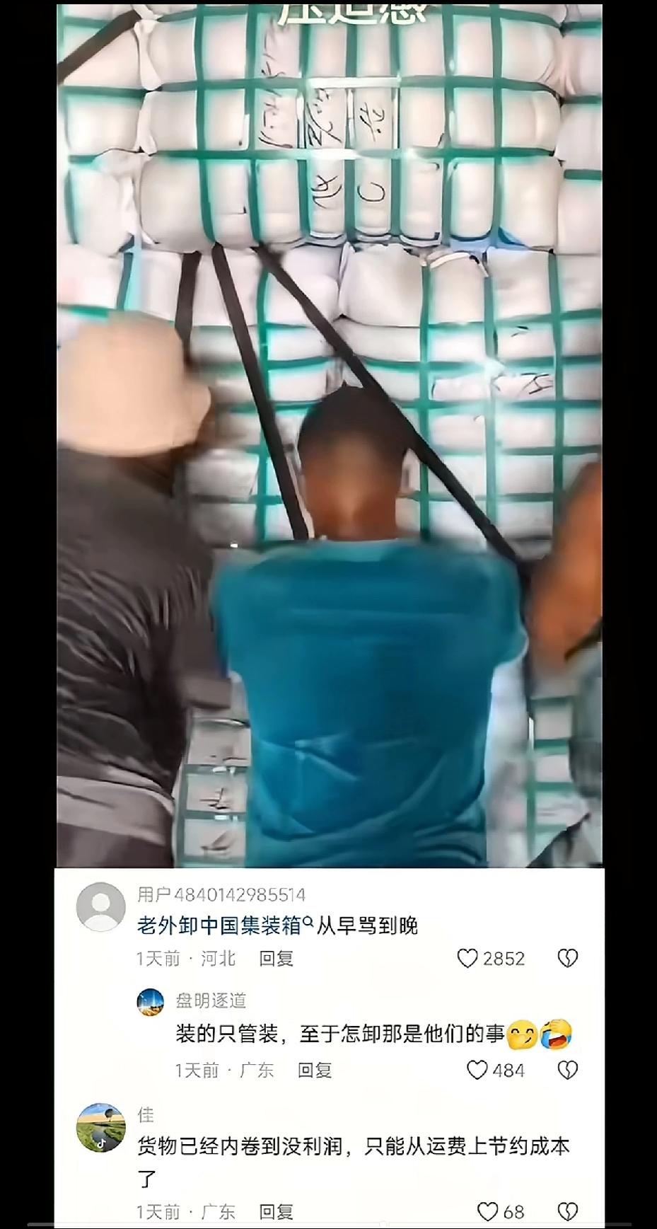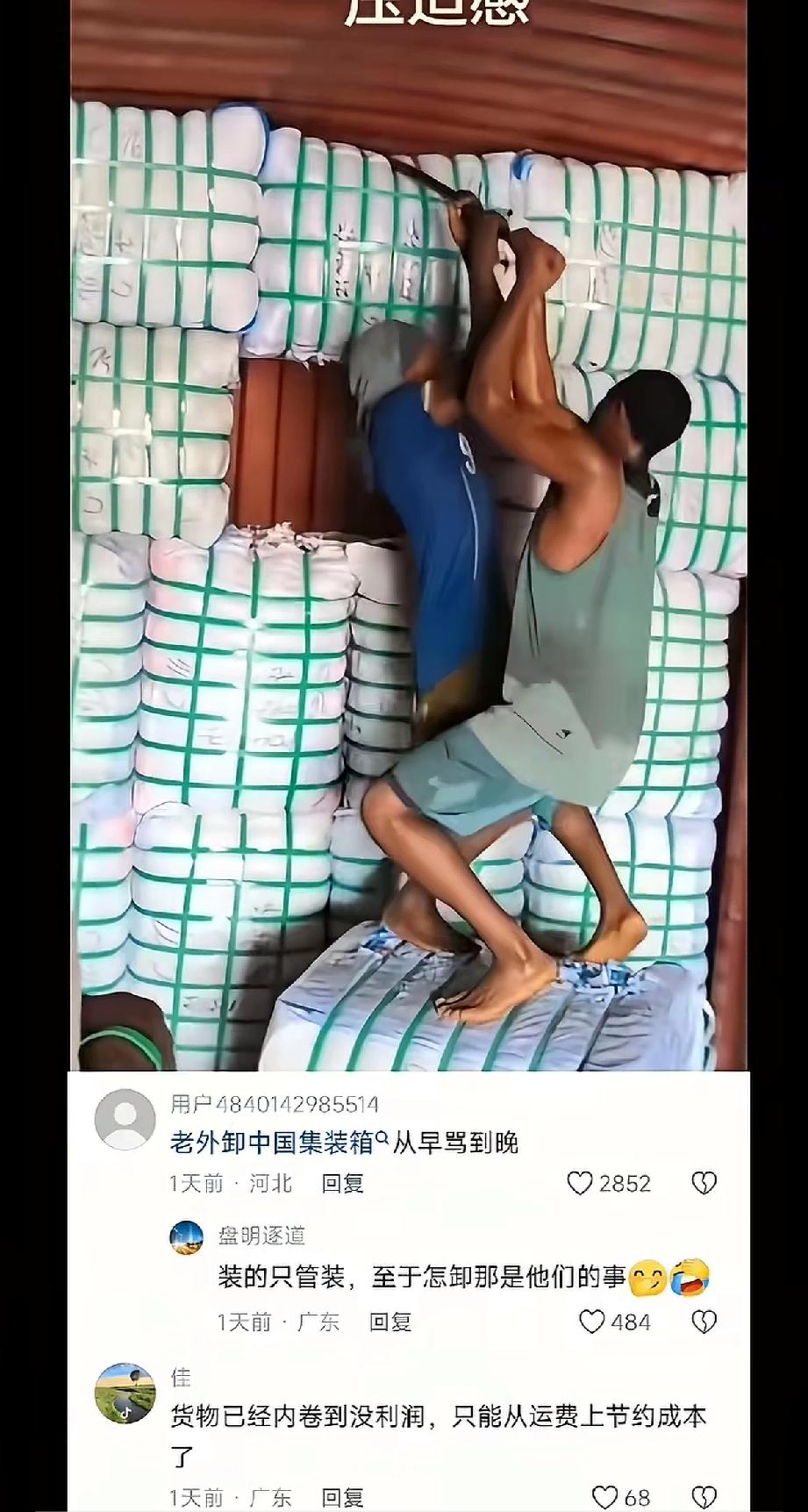 这该死的压迫感。 来自兔子的集装箱又到了,看到卸货的人呲牙咧嘴,拿着撬棍都上了,我心里竟然有一丝窃喜。 不是,现在的海运都这么卷了吗?这只是一个小小的集装箱啊,用着液压顶,不怕把集装箱撑爆了呀? 如果两家公司在招聘,一个是装,一个是卸,你愿意选择哪一个?