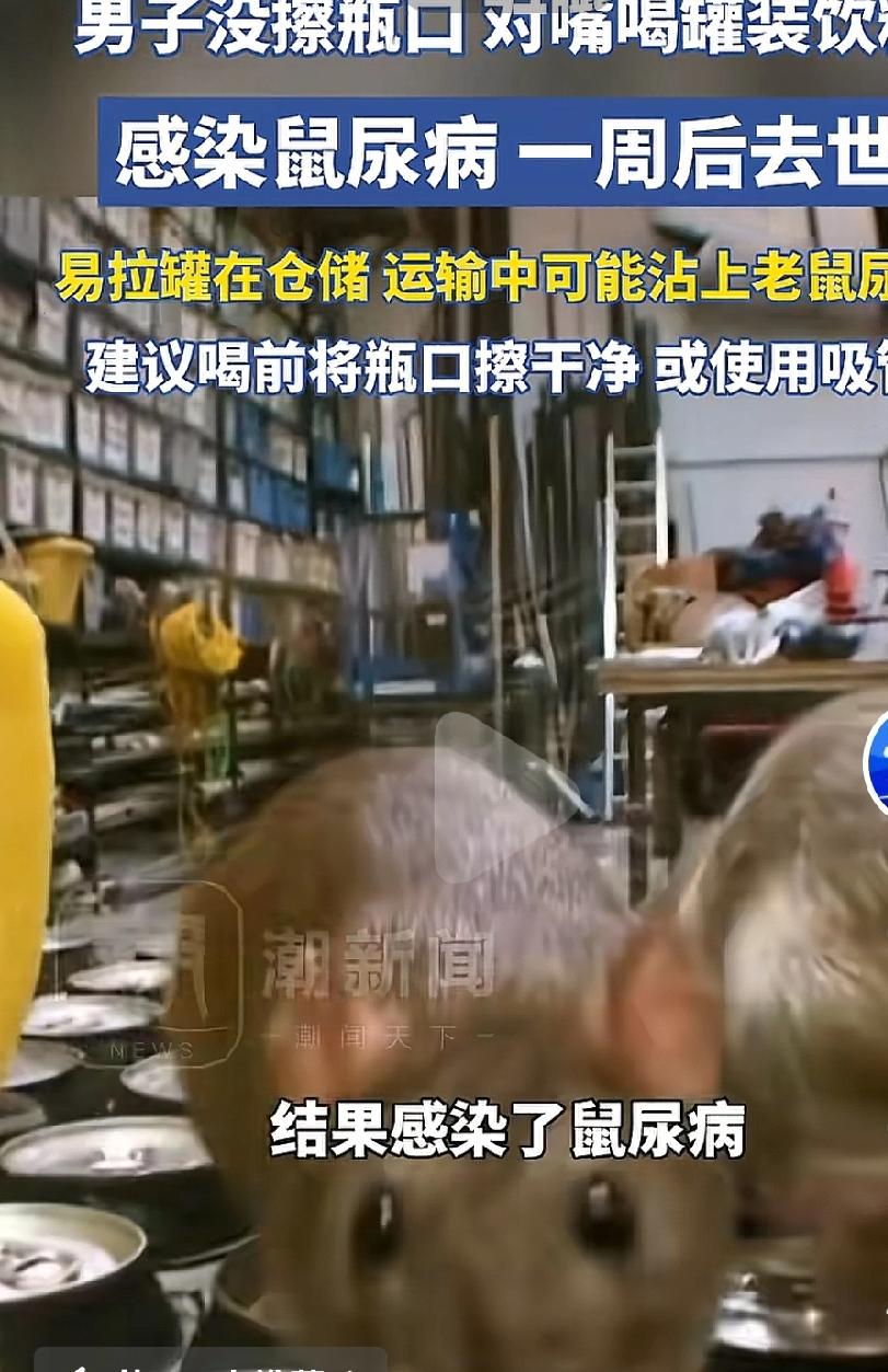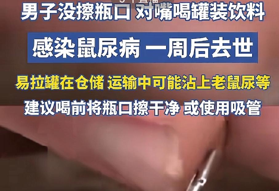 大家注意了… 近日一男子因喝易拉罐饮料未擦拭瓶口,导致染上鼠尿病,于一周后不幸去