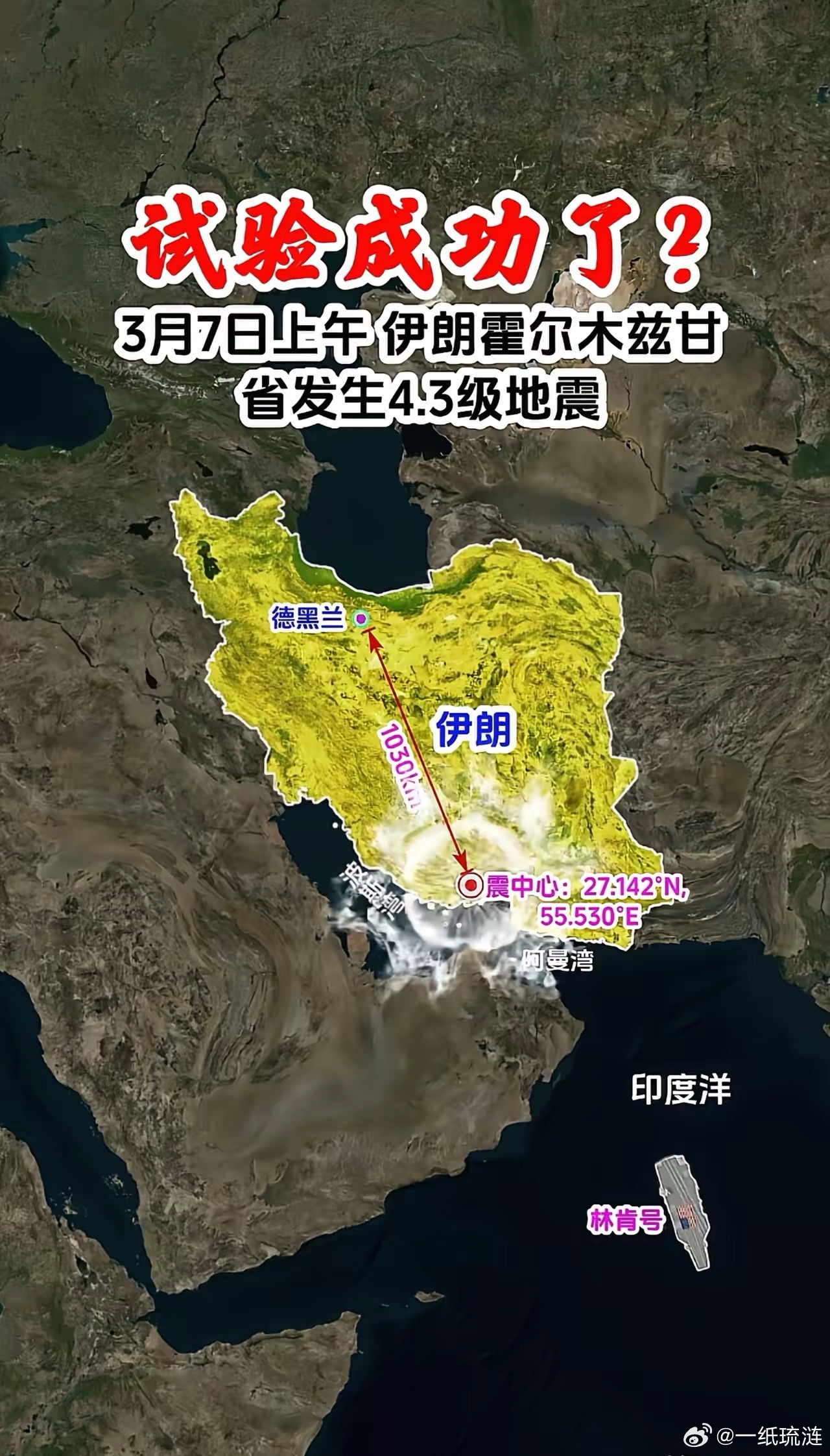 成功了?关键时刻,紧要关头,3月7日上午霍尔木兹甘省发生4.3级地震!震中位于伊朗南部战略要地,靠近霍尔木兹海峡看样子是成功了!接下来该是安静的时候了