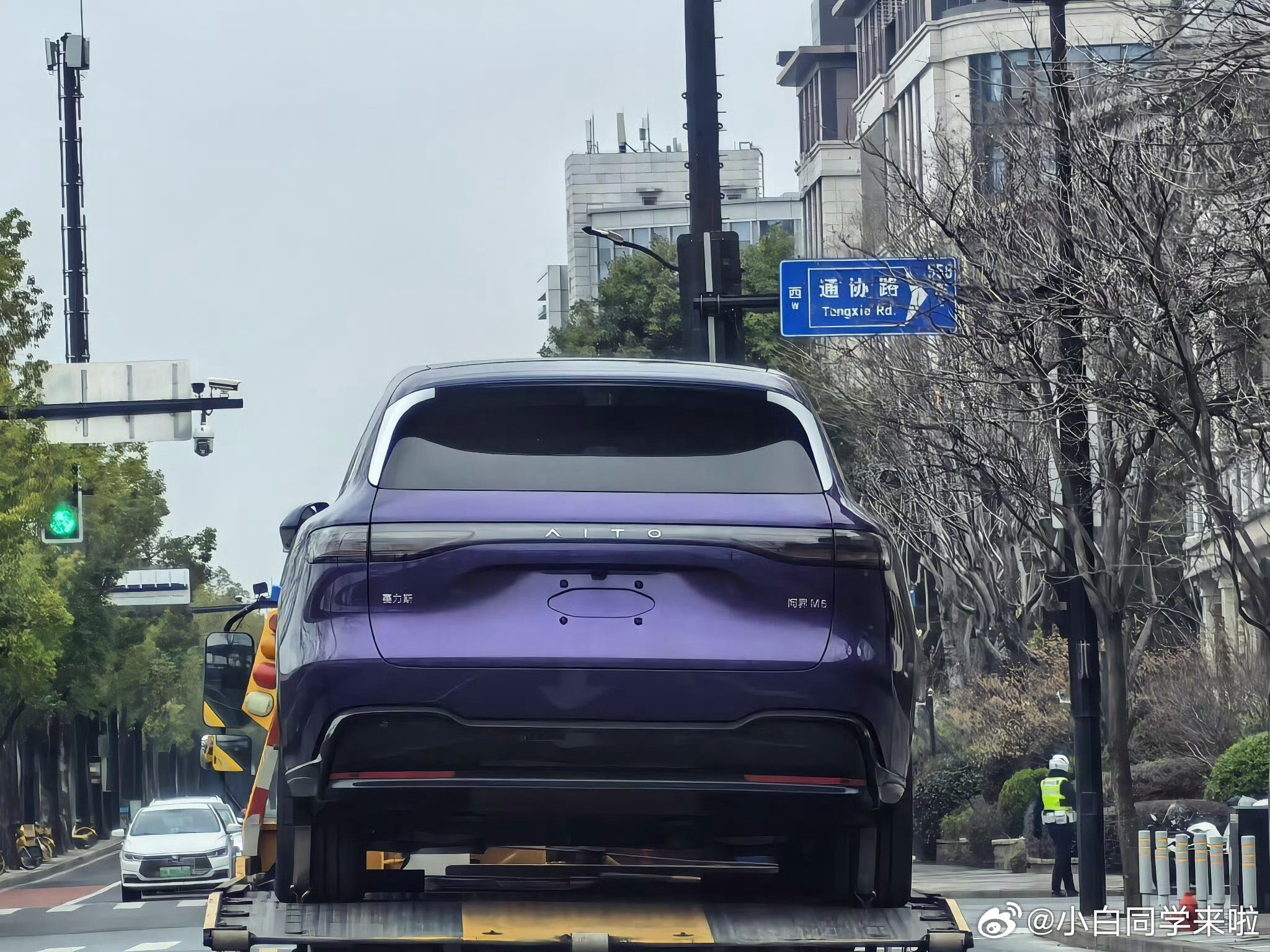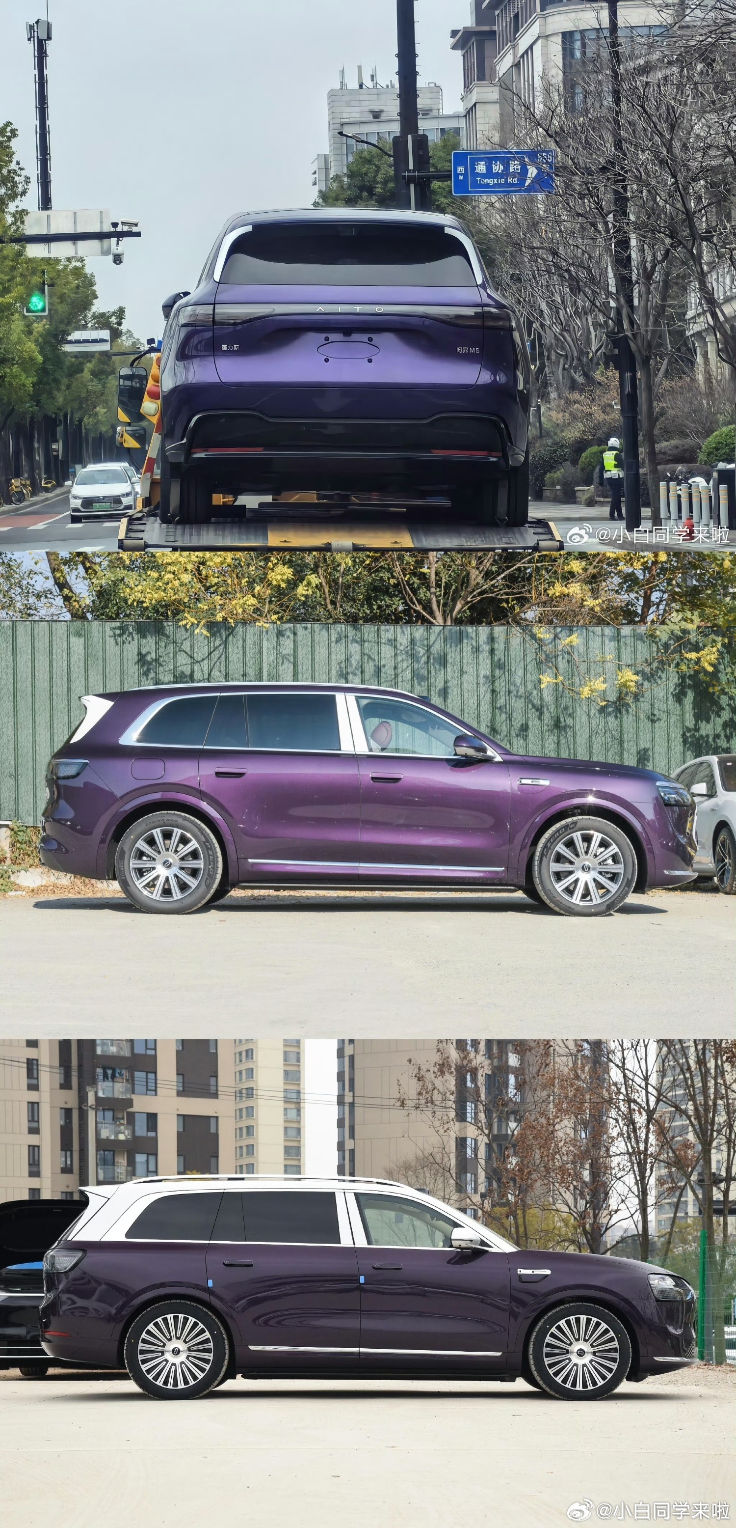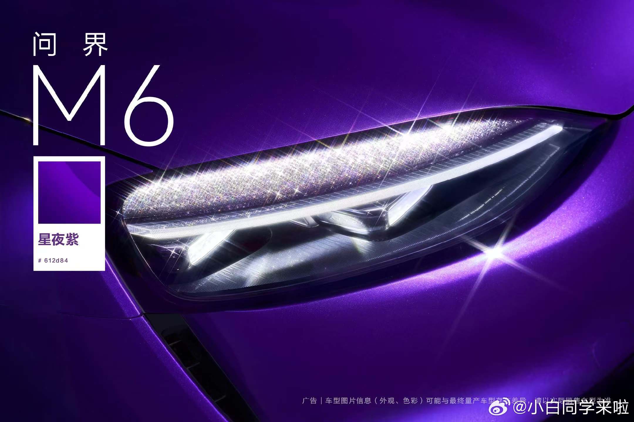 问界 M6 星夜紫官图,结合图一图二实拍对比看,和 M8、M9 的紫色有点不一样。