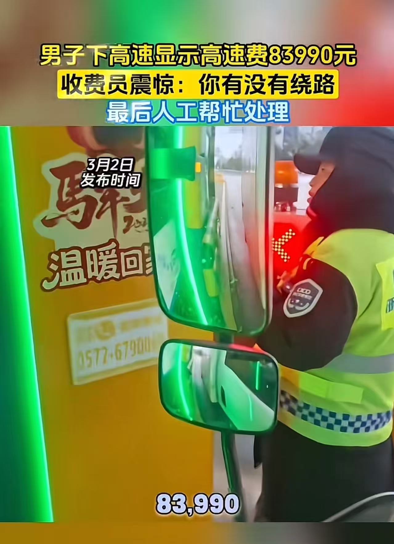 男子下高速显示高速费用83990元,收费员震惊:你有没有绕路!男子一句话,让人笑喷了!