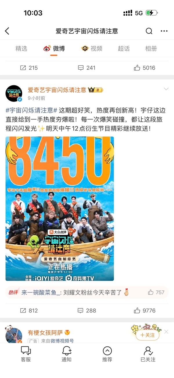 白鹿是真牛逼,到哪哪爆。去亲爱的客栈,直接收视率登顶,芒果为此把一期变三期。到爱奇艺的宇宙闪烁请注意,直接爆综!数据飙升综艺直接发战报。白鹿以后多拍综艺!爱看!