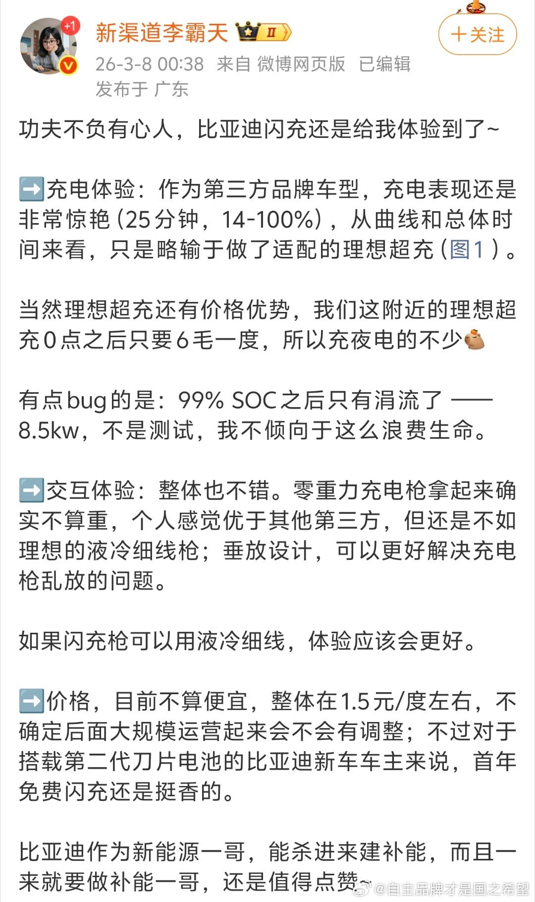 1.由于他长期恶心比亚迪,自然是不能抢先体验到二代刀片 于是她开着其他新势力的车去体验闪充桩,美其名曰体验“闪充”其实只不过是用其他新势力的车去闪充的桩子充电, 闪充的体验必须基于二代刀片电池! 但是她把这个叫做“体验闪充”就是偷换概念,把用其他新势力的体验来充电偷换成体验闪充。然后再搞一张友商充电峰值更高的图 带节奏,借刀杀人的把戏而已。