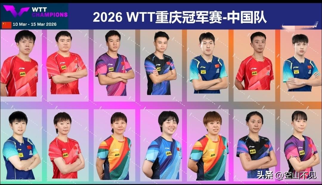 重庆冠军赛~中国队 男队7人,王楚钦领衔出赛。林诗栋伤退赛了,石头一月份打得太辛苦,休整一下更利于后面的比赛,复盘一下技战术。梁靖坤回归赛场,加油,分担一下王楚钦的压力。小将也支棱起来,冲一冲。 女队7人,孙颖莎领衔出赛。女队有海产姐妹在,暂时无人撼动女乒位置,稳稳的很安心。 中国队健康完赛!