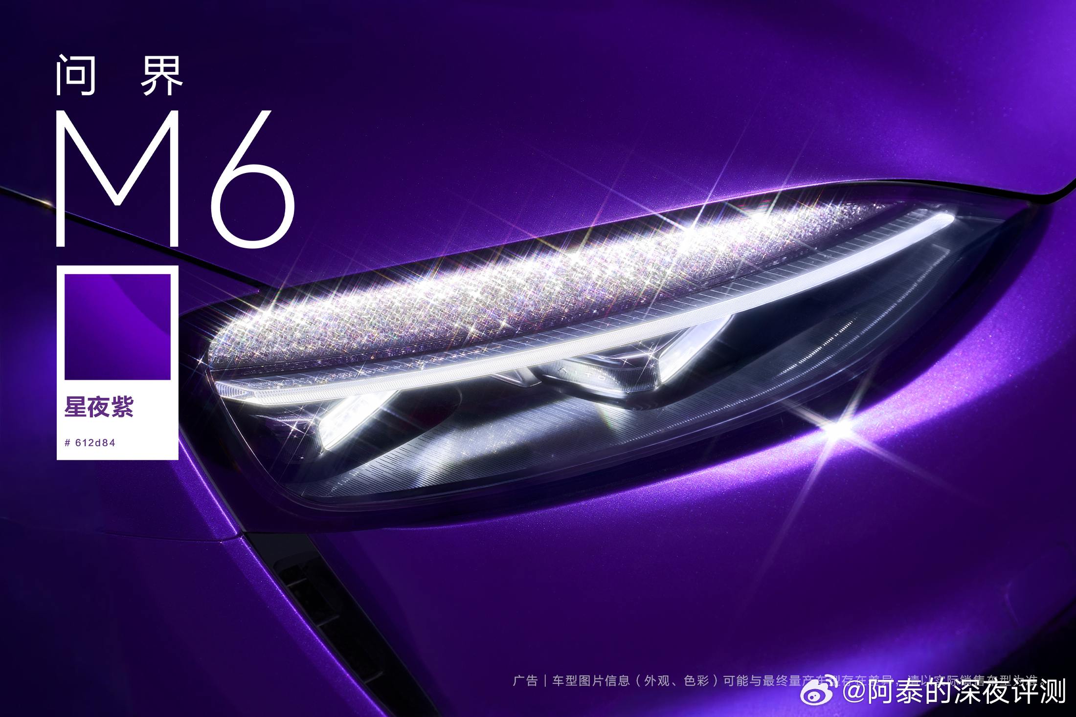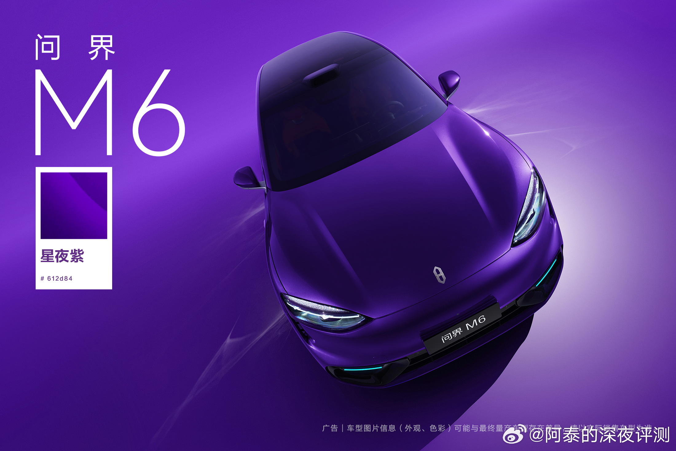 问界M6 「星夜紫」配色,感觉是高饱和度暗紫色,搭配细腻流光,深邃不失灵动!好看吗??新锐王牌问界M6七色亮相