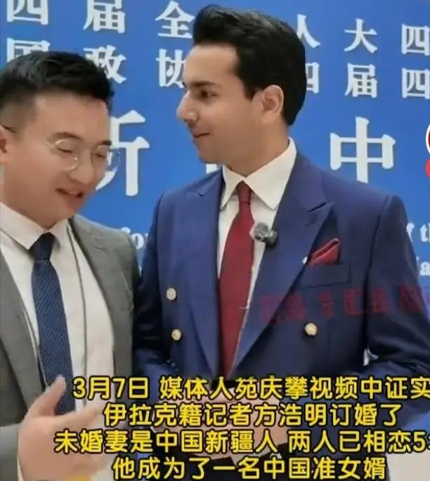 伊拉克记者方浩明成中国准女婿 2026全国两会期间,伊拉克记者方浩明成中国准女婿的消息刷屏了。他的未婚妻是中国新疆姑娘,两人校园相恋5年,计划今明两年结婚。3月7日,有人发现他手上戴了订婚戒指,他大方分享了喜讯。 方浩明本名艾敏·穆尼尔,2000年生于伊拉克,2011年随家人来中国,已在中国生活近15年。“方浩明”这个名字取自母校北方民族大学的“方”字,看得出他对中国的归属感。他曾在2024年外交部新春招待会跳“科目三”,被王毅外长点赞。这跨国恋太甜了,祝福他们!