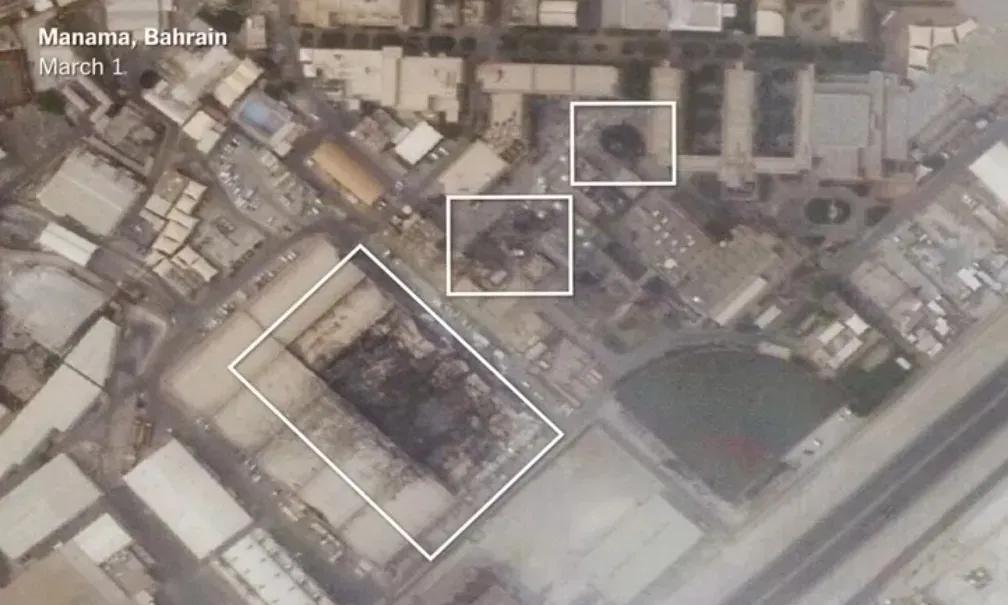 巴林内政部今天(3月8日)发表声明:“内政部长阁下:任何人抛弃民族良知,背叛祖国,通过拍摄重要地点和设施并将其发布到社交媒体上供伊朗侵略者使用,从而参与对巴林的侵略,都是此次侵略的同谋,并将依法受到惩罚。” 巴林是一个逊尼派掌权的国家,但超过70%的民众是什叶派,这样的国家什么怎么才算“民族良知”?所以巴林政府的威胁不会有任何效果也阻挡不住。美以联盟袭击伊朗,伊朗率先摧毁的目标就是美军第五舰队巴林基地及防空系统(图2~3),而流出这些影像资科的是美国一家私营公司,该公司销售地球上任一地点的详细图像。伊朗早已掌握了美国在巴林境内所有的一切。