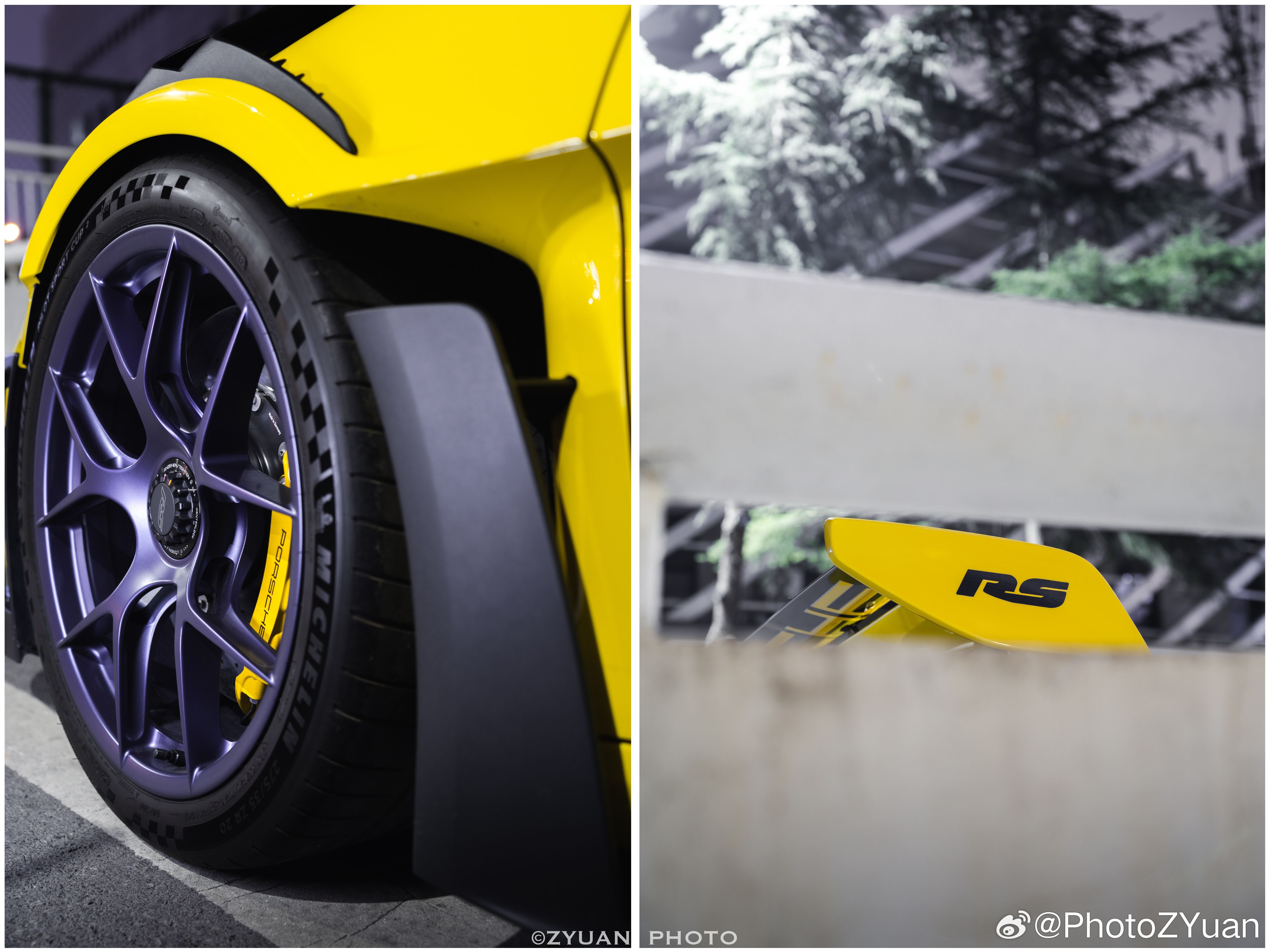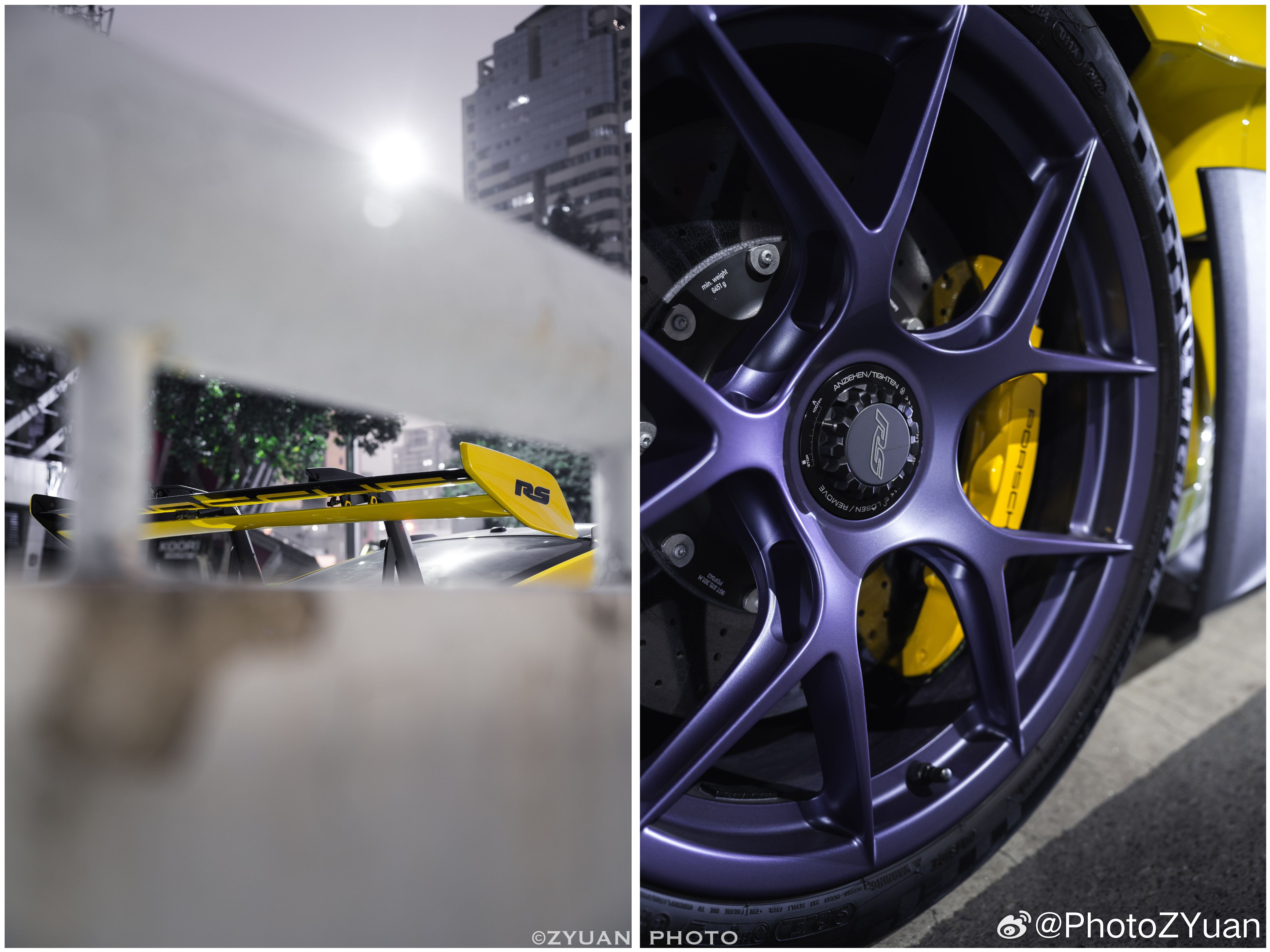 Spec为黄色车漆面,紫色锻造镁合金轮毂,与原厂Weissach套件尽显战斗与张扬,美规规格。