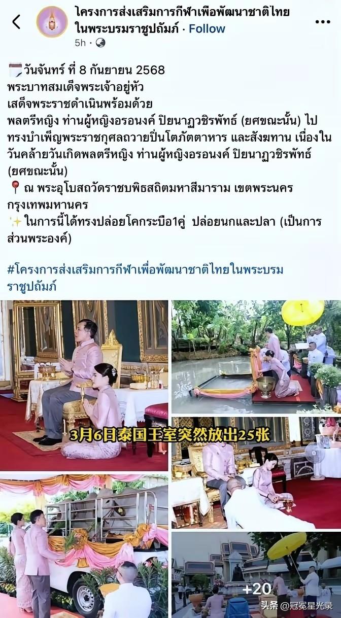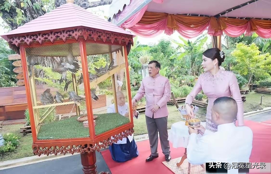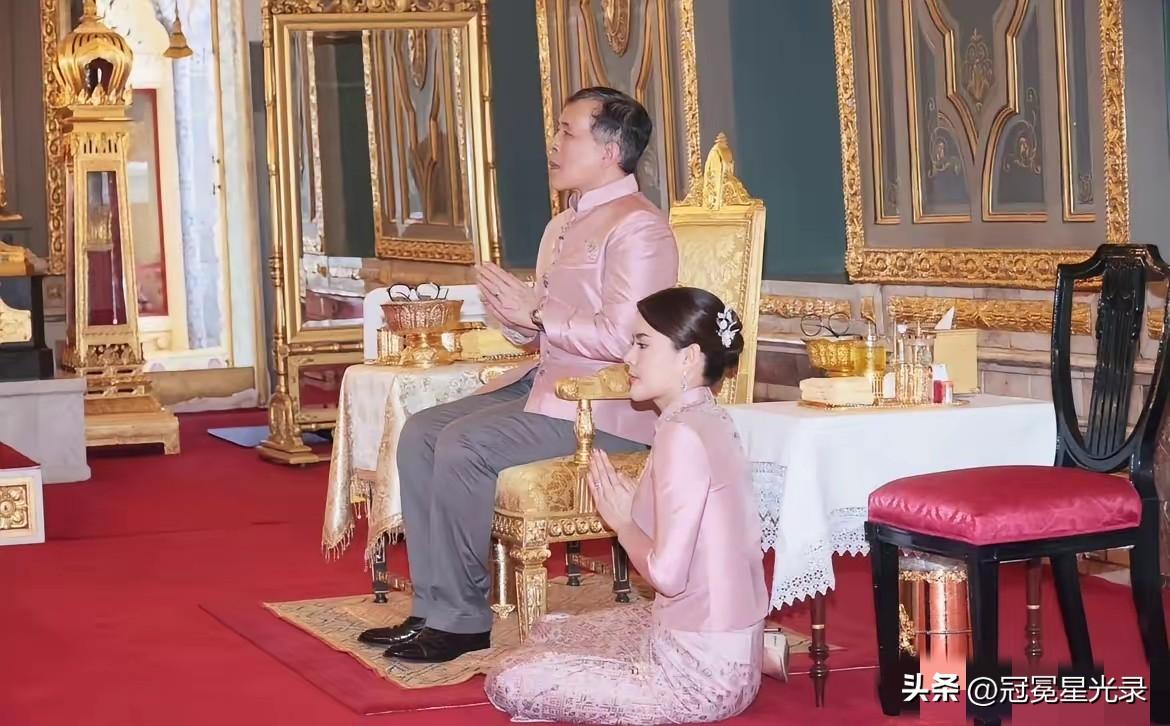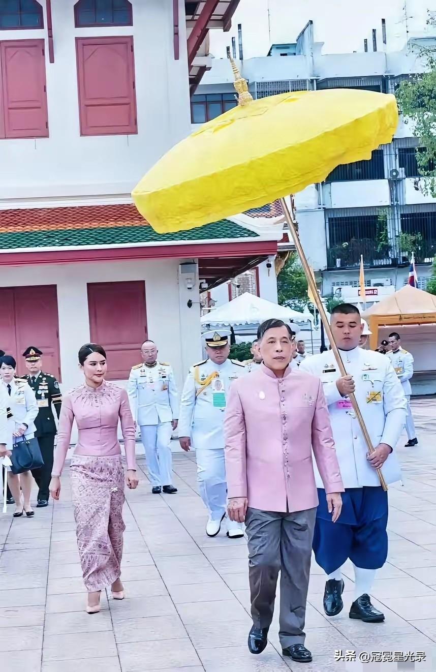 都说泰王宠爱新妃欧拉弄,其实我一直没有这种感觉。 但是,这次看到了泰国王室首次公开的泰王和新任小主欧拉弄的合影,第一次对这份宠爱有了切实的感受。 3月6日,泰国王室首次公开了泰王玛哈和新妃欧拉弄的合影,照片里泰王和欧拉弄身穿粉色情侣装,一看就是一对恩爱秀幸福的情侣。 这组照片拍自去年9月份,泰王为欧拉弄庆生,穿着情侣装,亲自为欧拉弄到寺庙祈福。 穿着一身粉色宫装,衣着妆容无一不精致贵气,没有苏提达王后,甜美的跟在泰王身边,笑的甜美动人又满足。